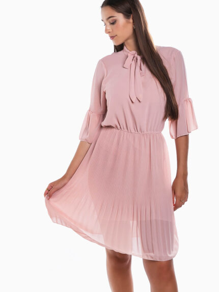 Vestido curto plissado manga 3/4