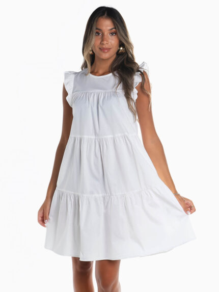 Vestido curto manga cava com folhos