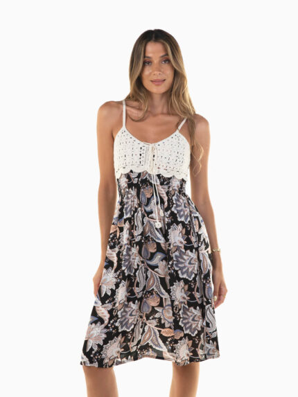 Vestido curto preto com padrão