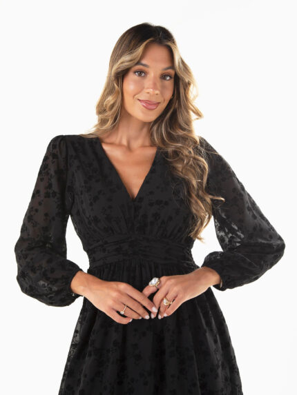 Vestido curto preto bordado em veludo