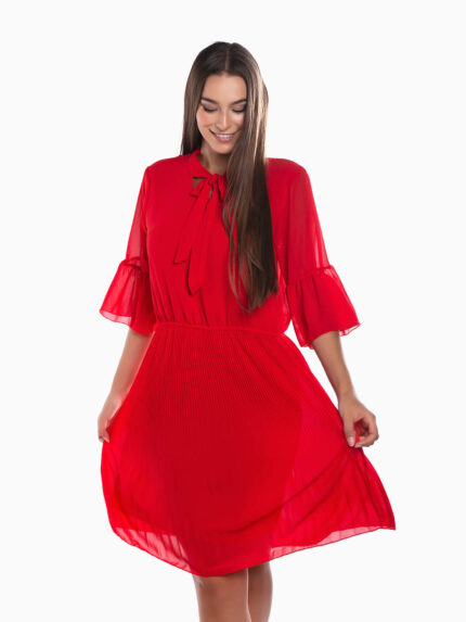 Vestido curto plissado manga 3/4