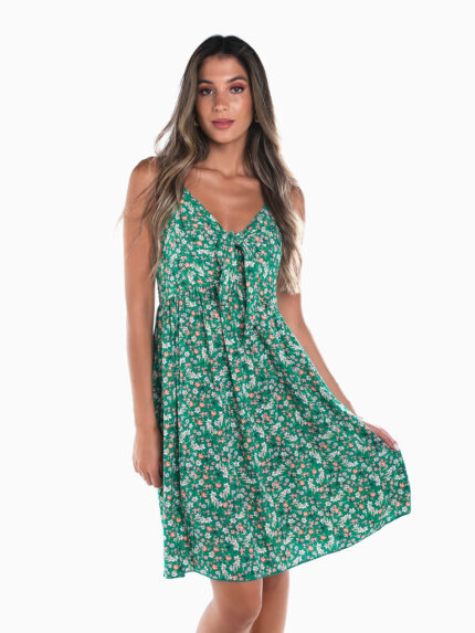Vestido curto floral com nó