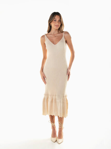 Vestido midi alças malha canelada