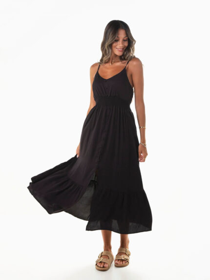 Vestido midi com detalhe dourado