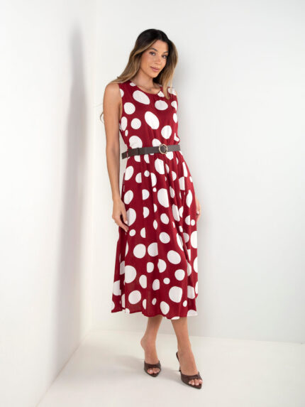 Vestido midi às bolas com cinto