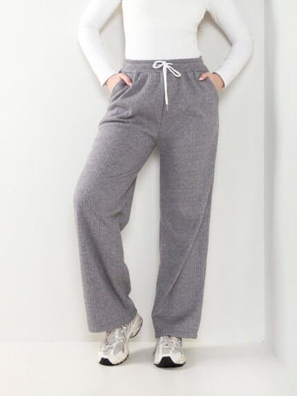 Calças largas malha canelada