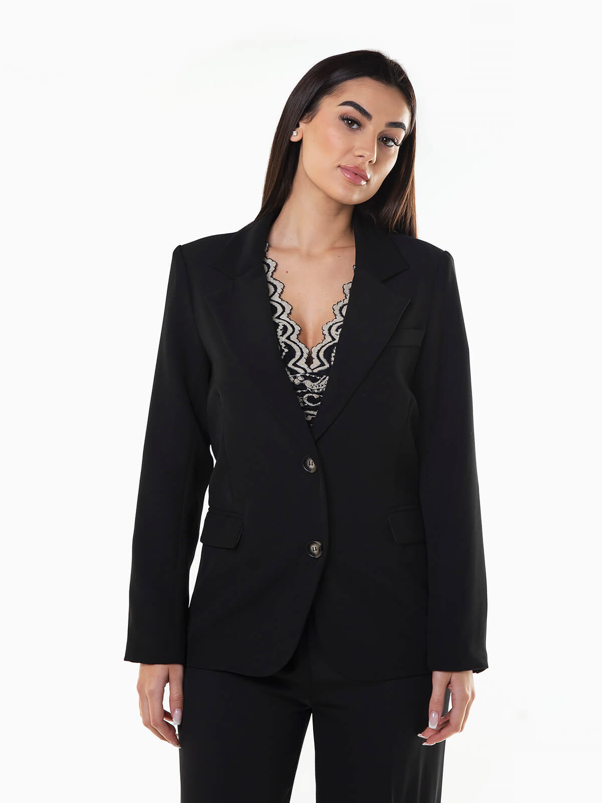 Blazer com ombreiras aplicadas. Blazer regular fit de manga comprida com punhos abotoados. Interior forrado. Gola abas e lapelas. Palas decorativas. Aperto de dois botões.