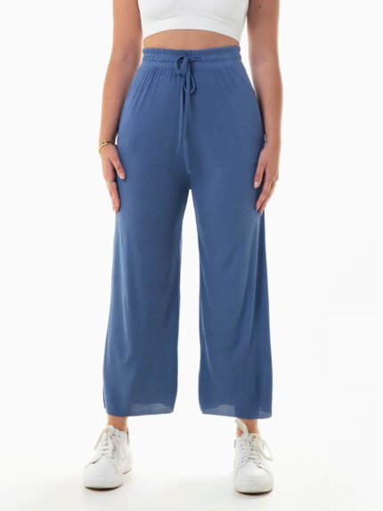 Blusa acetinada com gola redonda em fios luréx para efeito brilhante. Blusa fluída com manga 3/4.