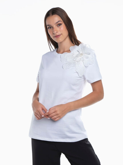 Blusa branca com folhas verdes para senhora. Blusa sem mangas com decote redondo elástico e interior forrado.