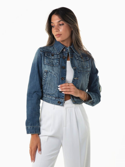 Blusão ganga curto com bordado 9,99 €