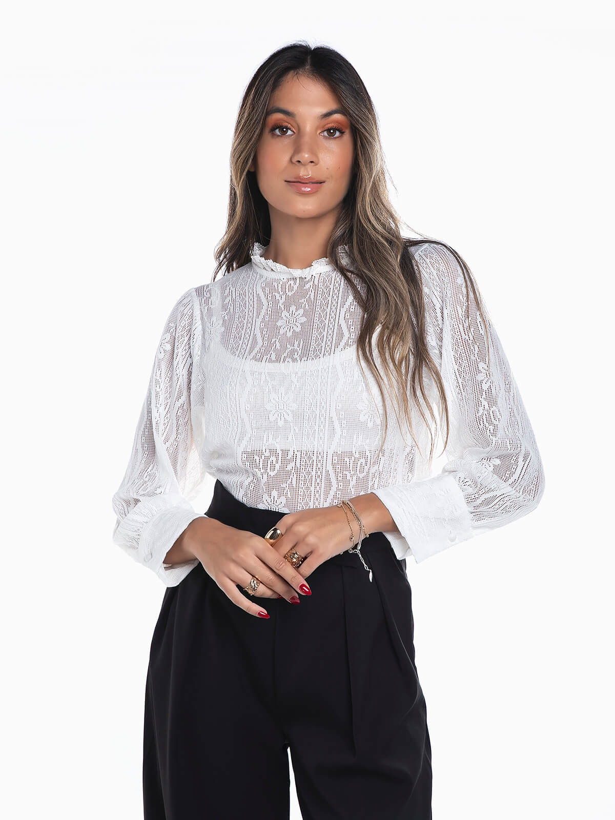 Início Mulher Camisas e Blusas Blusa em renda algodão