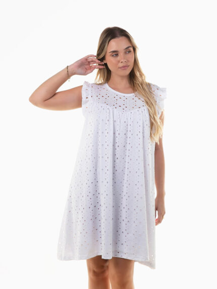 Blusa fluída azul turquesa sem mangas para mulher. Blusa com folho aplicado na cava e decote em V.