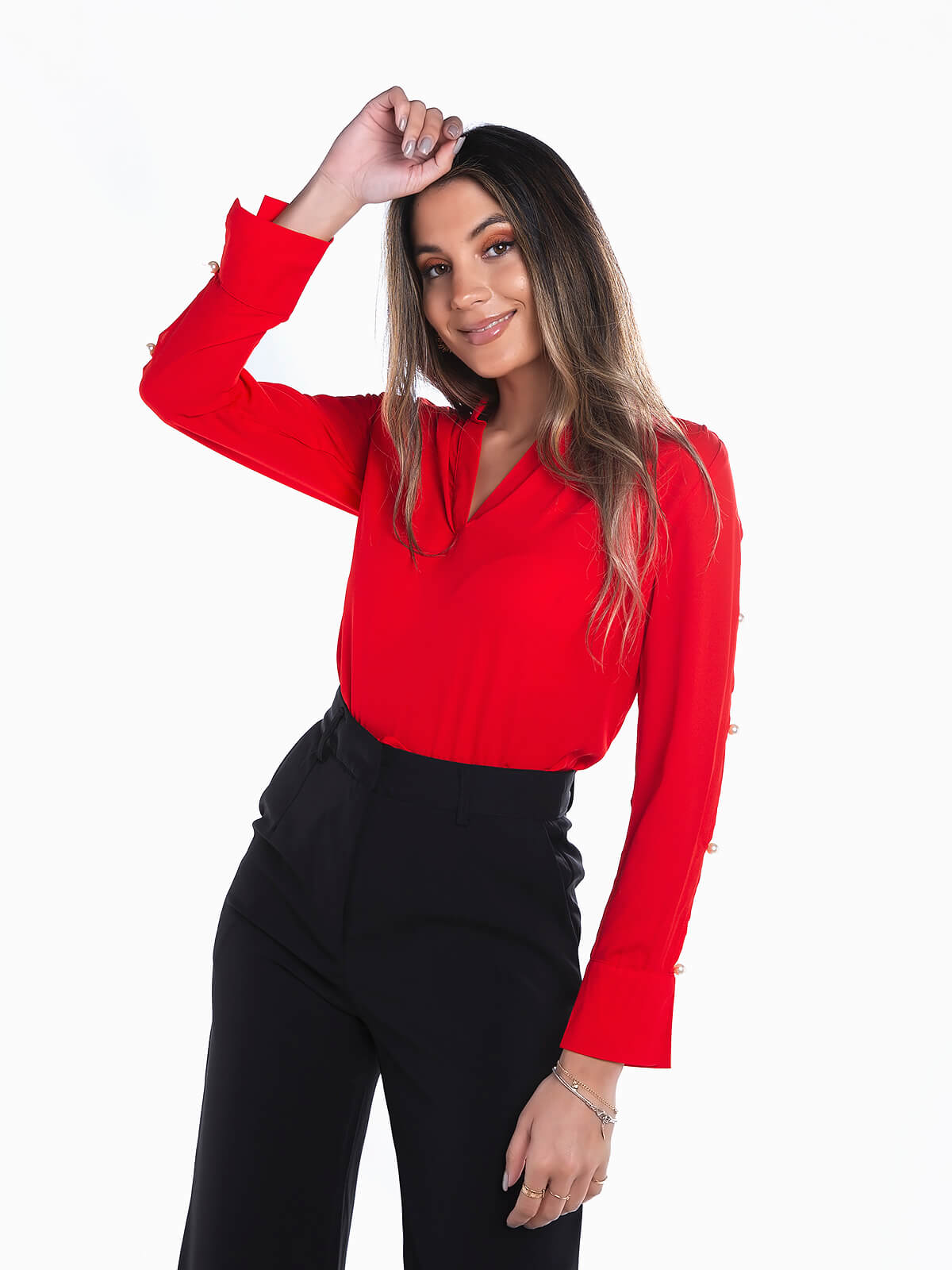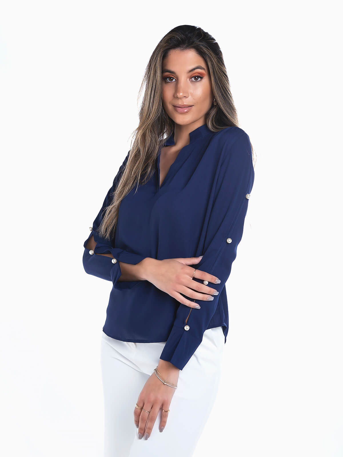 Início Mulher Camisas e Blusas Blusa manga comprida botões pérolas