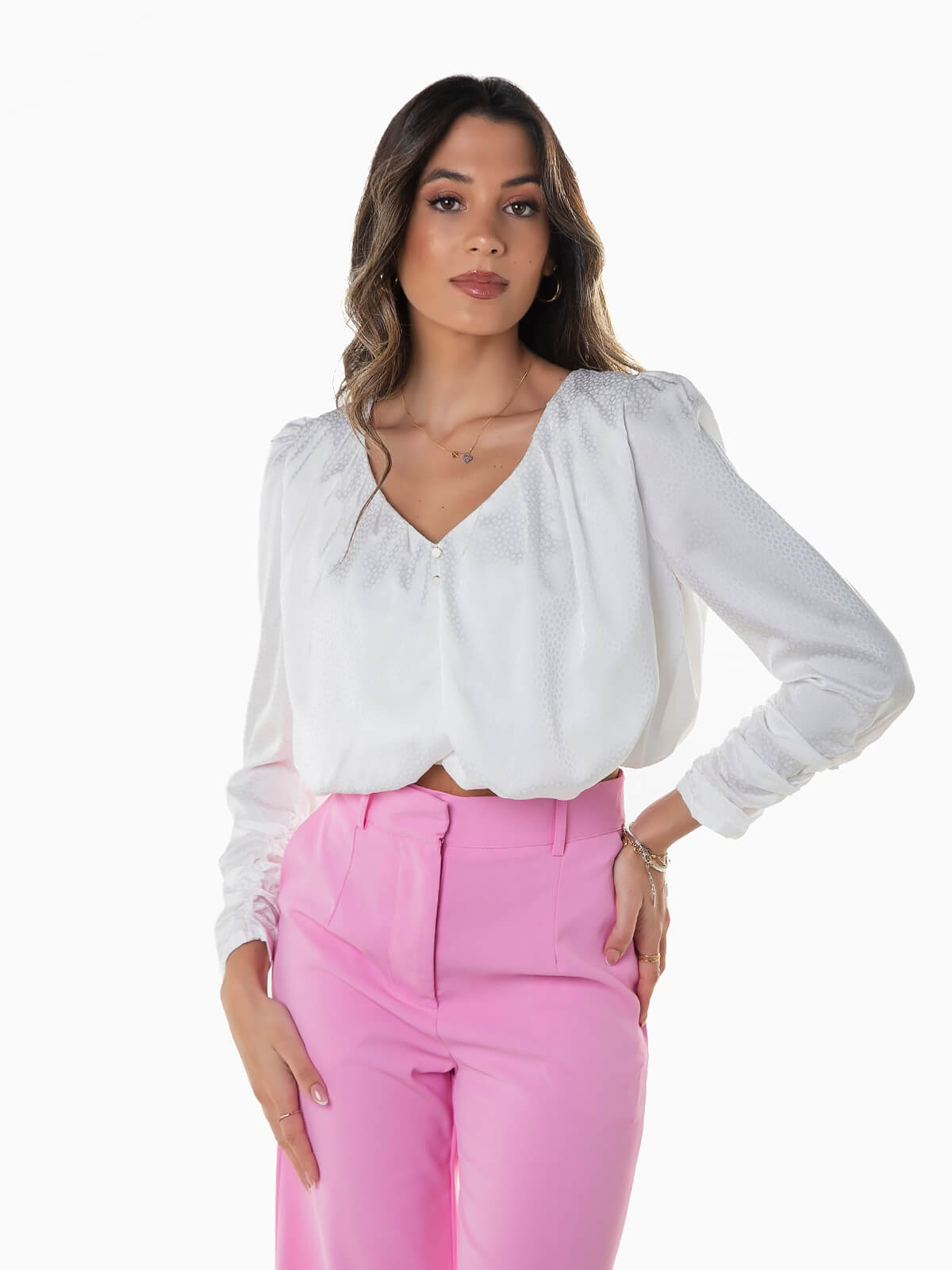 Início Mulher Camisas e Blusas Blusa manga comprida com franzidos