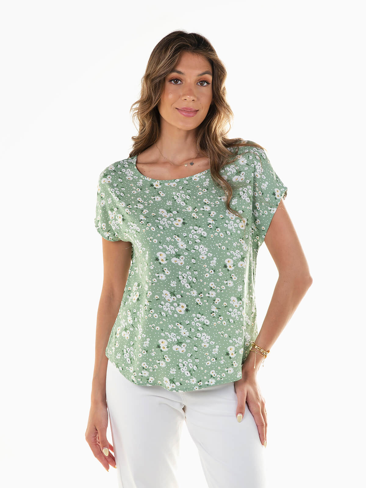 Início Mulher Camisas e Blusas Blusa verde floral manga curta