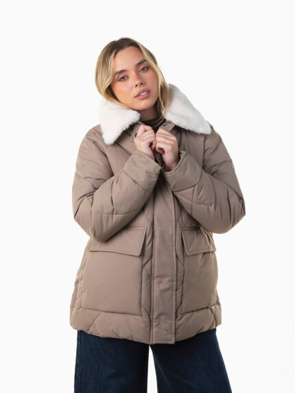 Blusão acolchoado comprido com gola alta e cinto removível no mesmo tom. Modelo com dois bolsos laterais, punhos em malha e aperto cruzado com botões de pressão ocultos. Combina com calças largas e botas para um look quente e elegante nos dias frios.