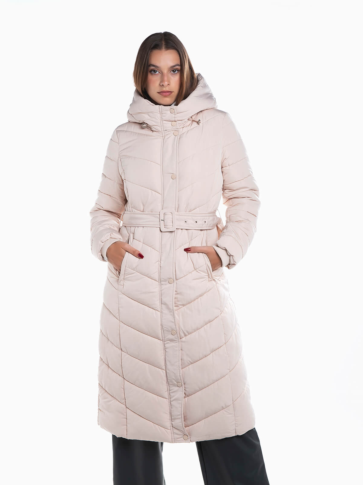 Início Mulher Casacos e Blusões Blusão acolchoado comprido com cinto
