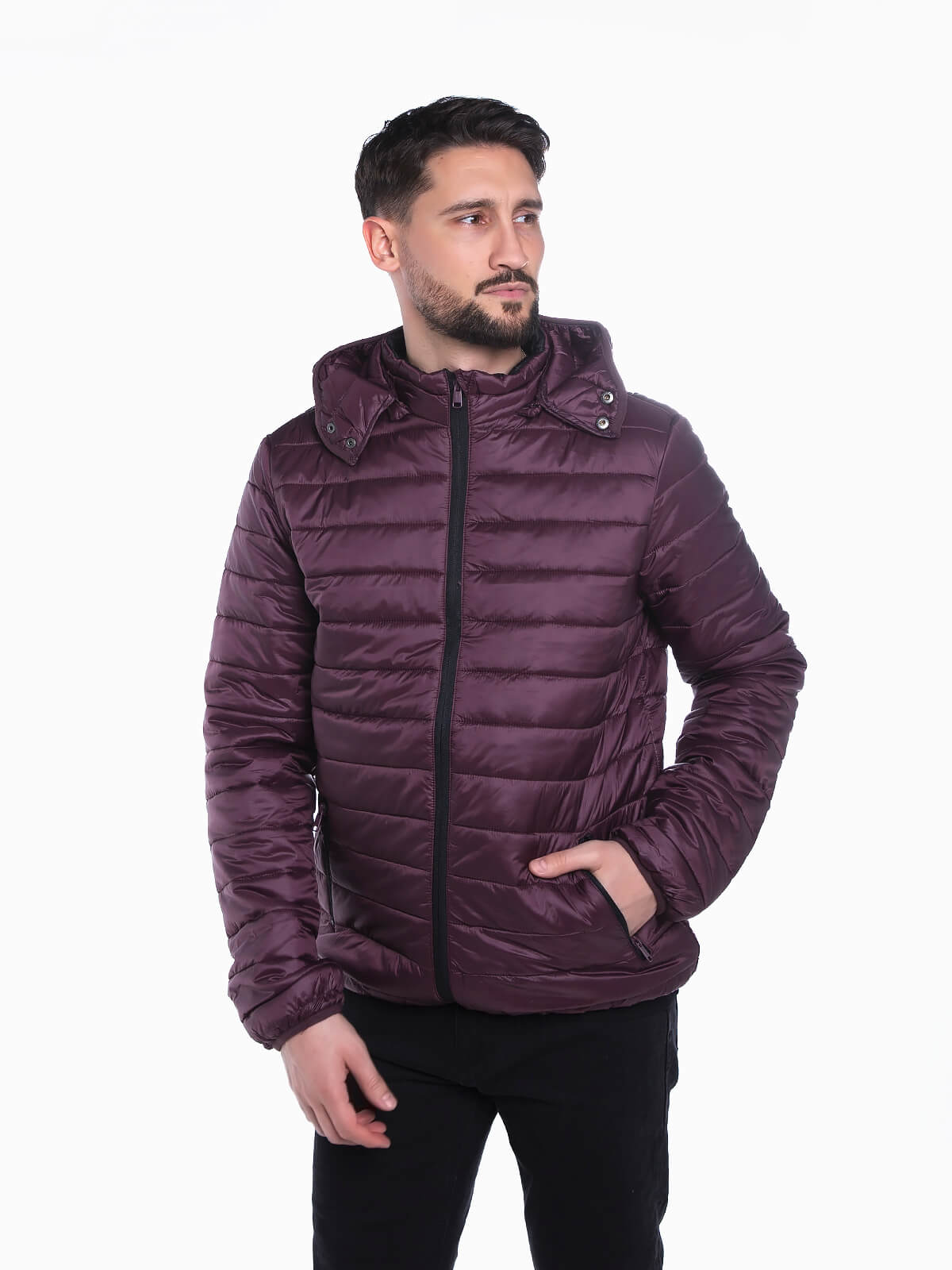 Blusão acolchoado ultraleve com capuz removível. Blusão impermeável com gola subida e punhos elásticos. 2 bolsos em viés. Aperto frontal de fecho zíper.