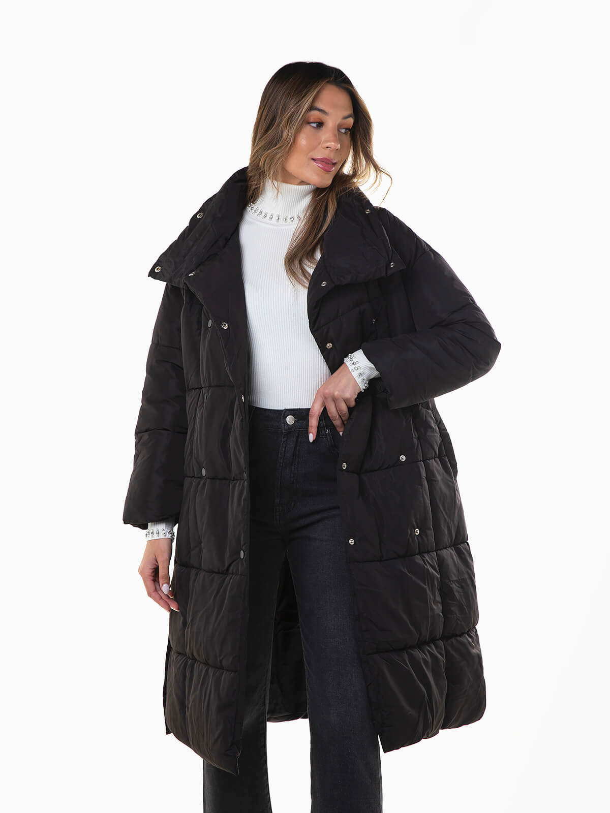 Blusão comprido acolchoado preto