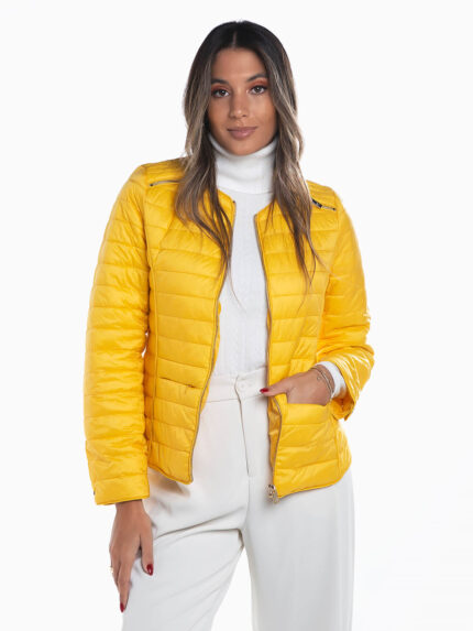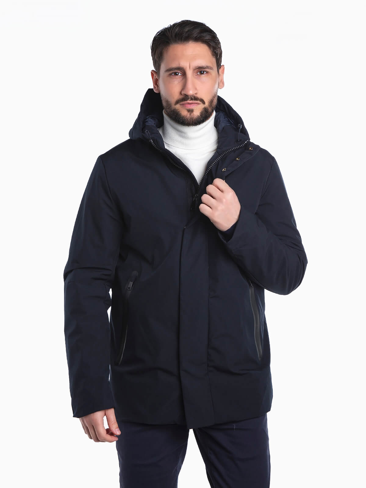Blusão comprid impemermeável com capuz e gola alta. Blusão acolchoado leve com 2 bolsos laterais e 1 interior. Aperto fecho zíper e botões pressão.