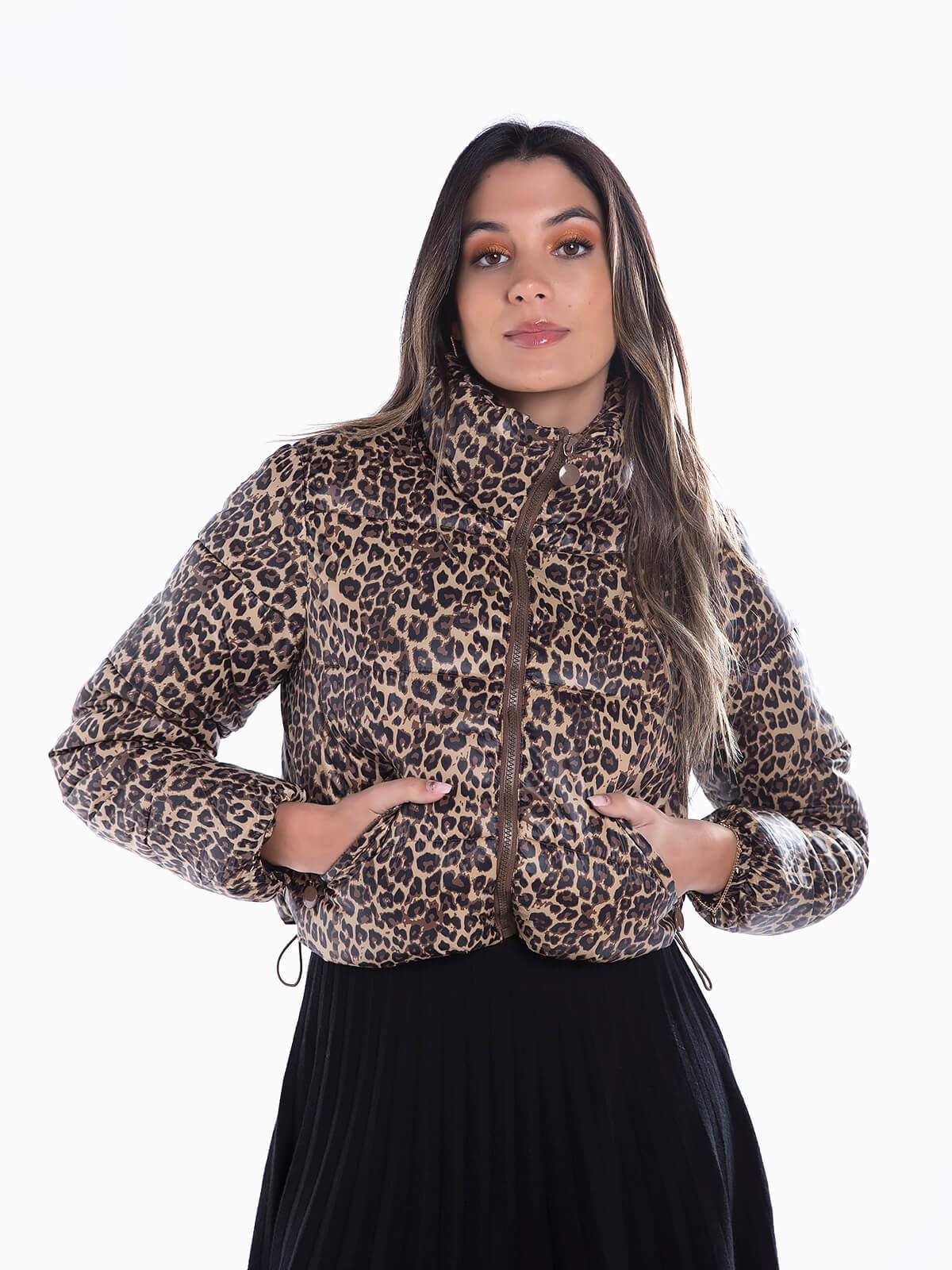 Início Mulher Casacos e Blusões Blusão curto acolchoado animal print