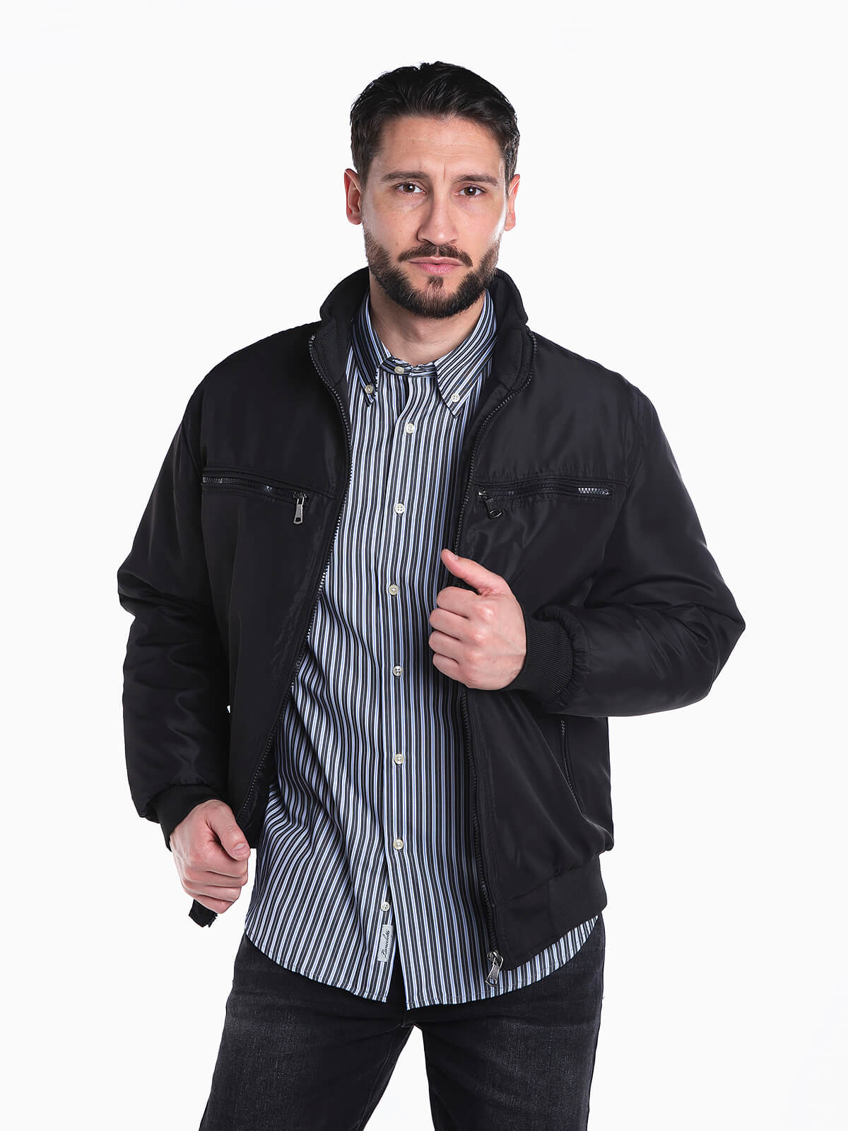 Blusão impermeável com gola alta para homem. Blusão acolchoado leve com 4 bolsos e 1 interior. Extremidades elásticas. Manga comprida. Aperto de fecho zíper.