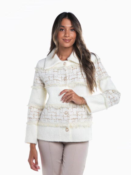 Blusão motard camel para mulher. Blusão efeito pele com gola de lapelas e 2 bolsos. Manga comprida. Interior com forro às bolas. Fivelas laterais para ajustar. Fecho éclair em viés na frente.