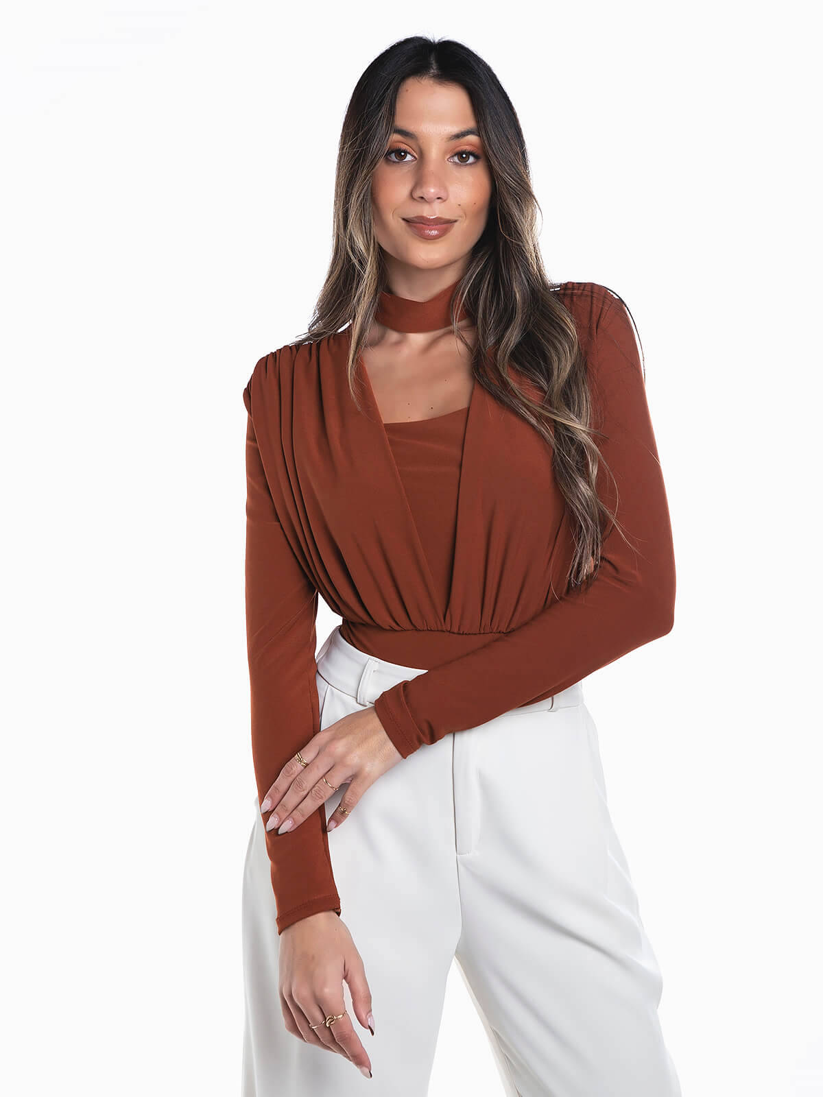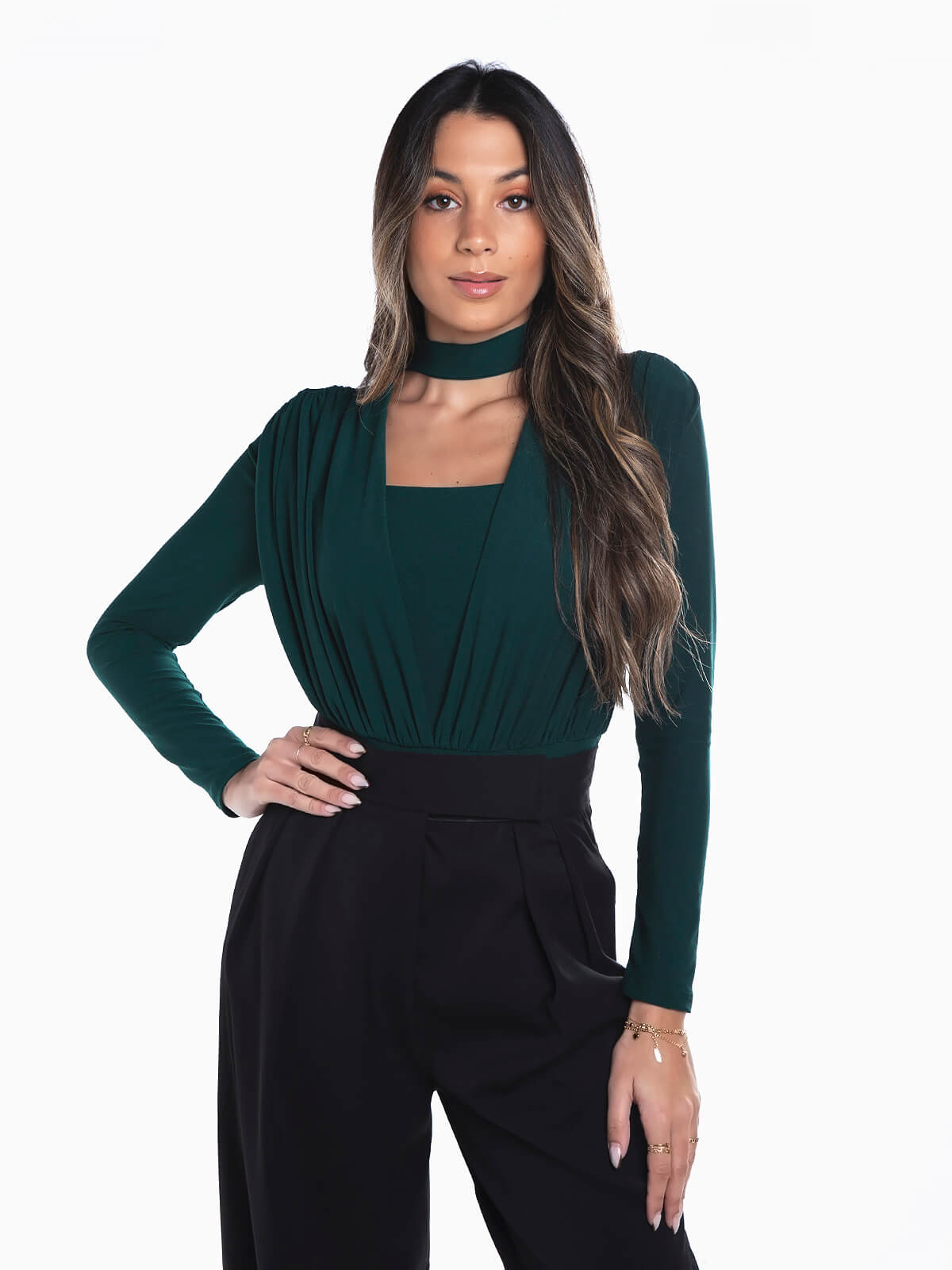 Body elástico manga comprida