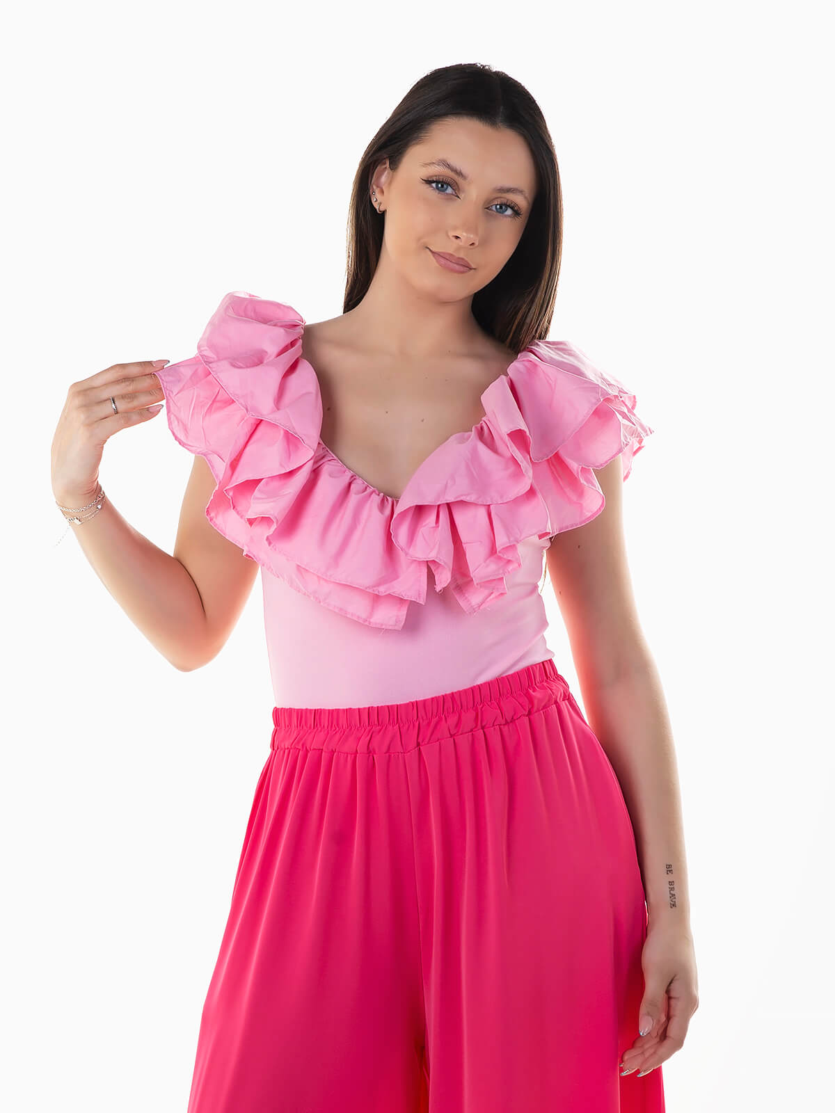 Início Mulher Tops e Bodies Body malha com folhos