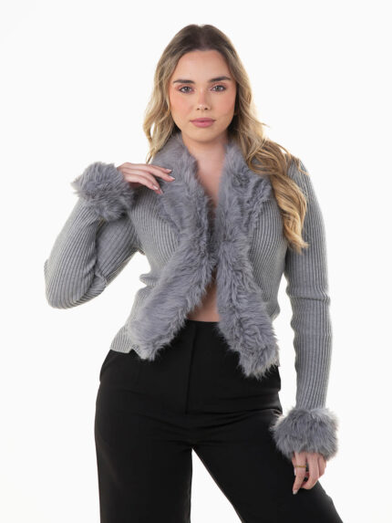 Casaco malha canelada com pelo 27,99 €