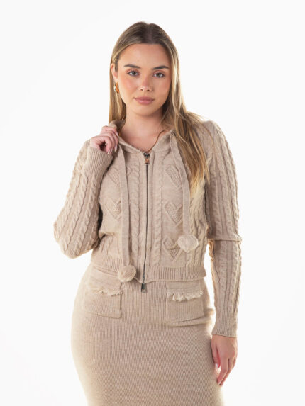 Bolero vermelho com decote em V para senhora. Cardigan cropped manga comprida com aperto frontal de laços. Punhos canelados.