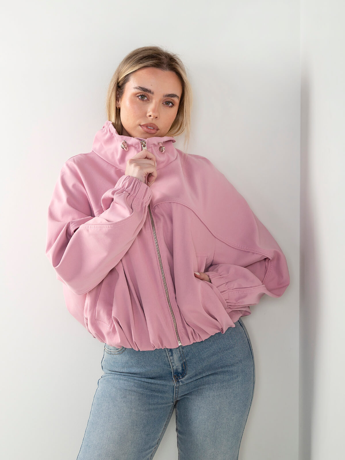 Bomber oversized com gola alta e fecho frontal. Modelo com punhos e cós elástico para um ajuste confortável, além de 2 bolsos funcionais. Uma peça versátil e atual, ideal para completar looks urbanos dentro das tendências.