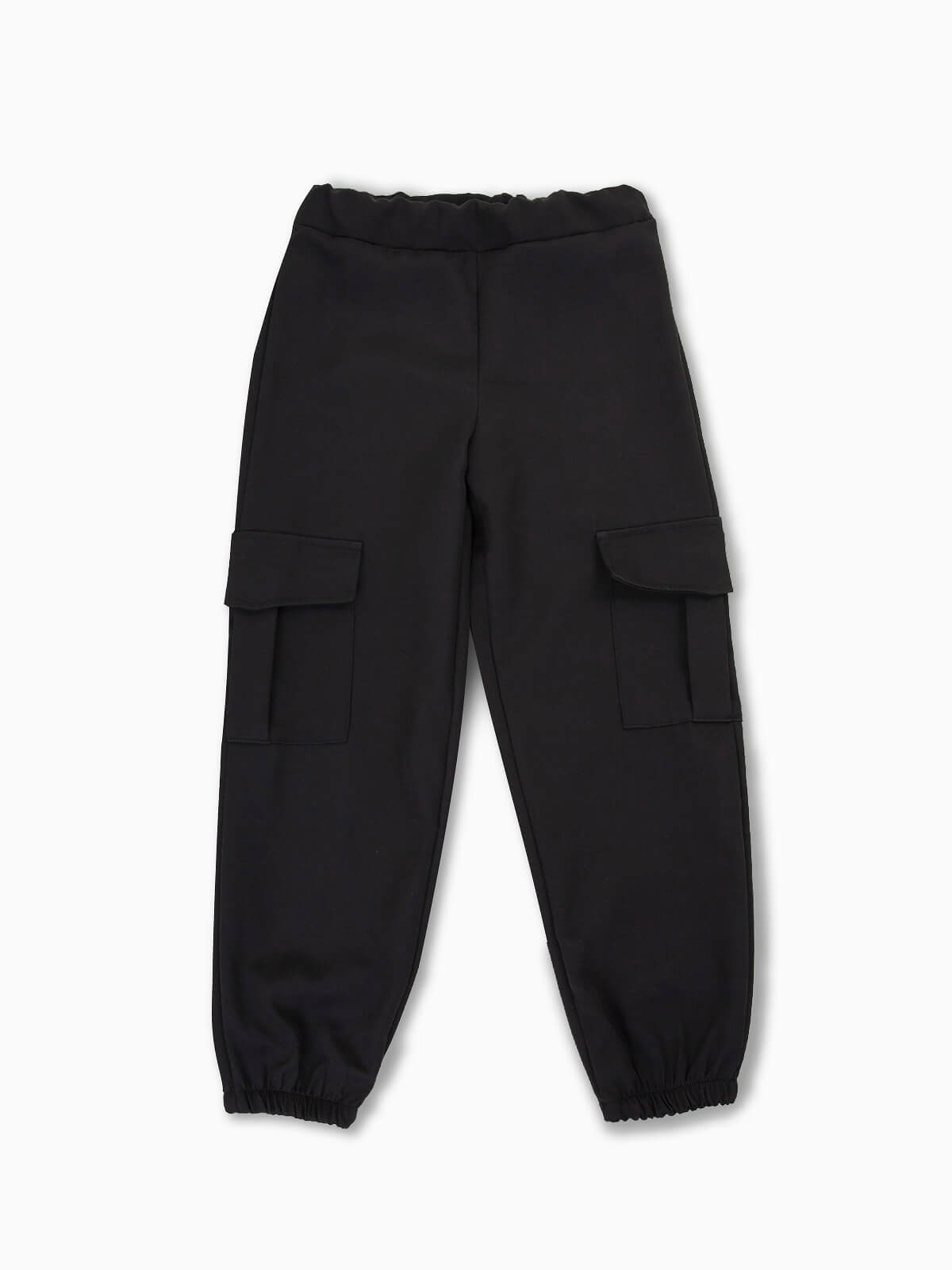 Calças fluídas estilo cargo para menina. Calças de cintura alta com extremidades elásticas. 2 bolsos.