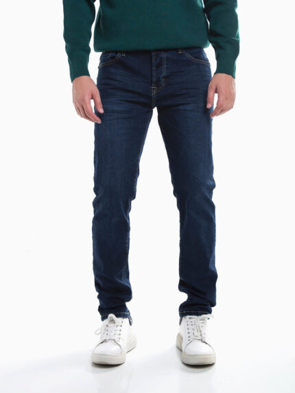Calças chino azul marinho para homem. Calças clássicas slim fit. Dois bolsos laterais e dois posteriores com abertura debruada. Aperto de fecho éclair e botão.