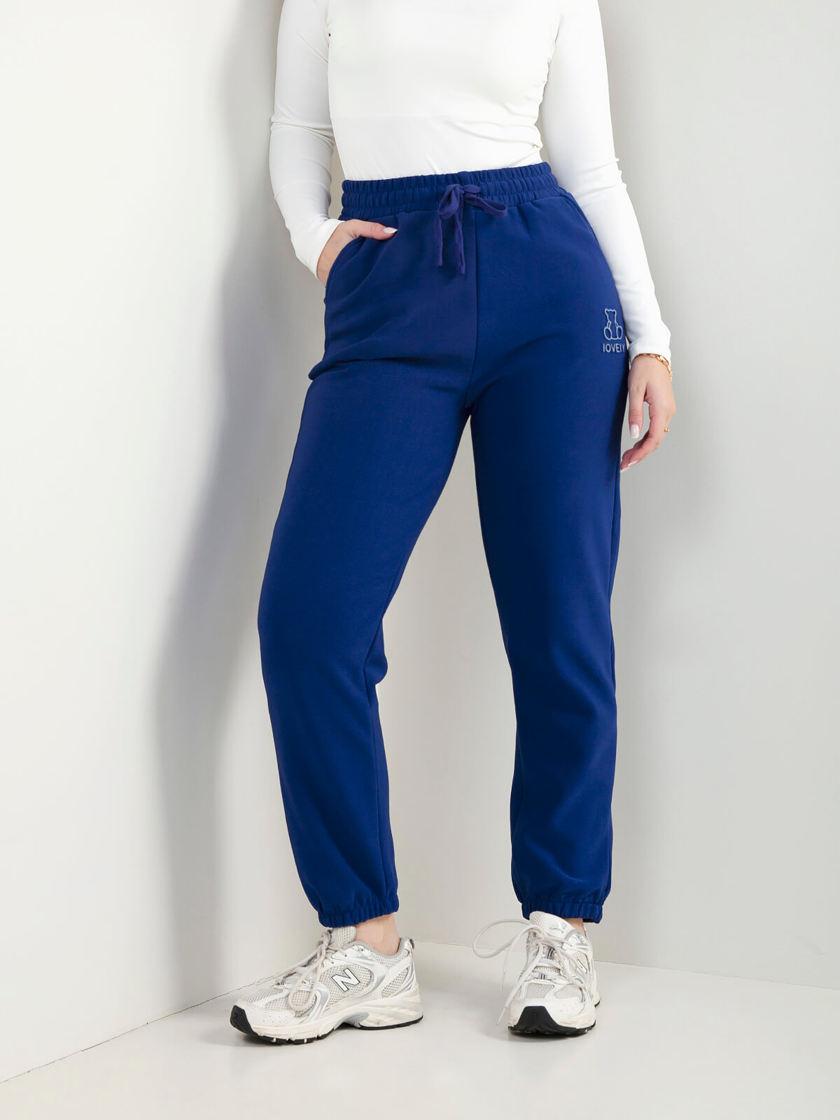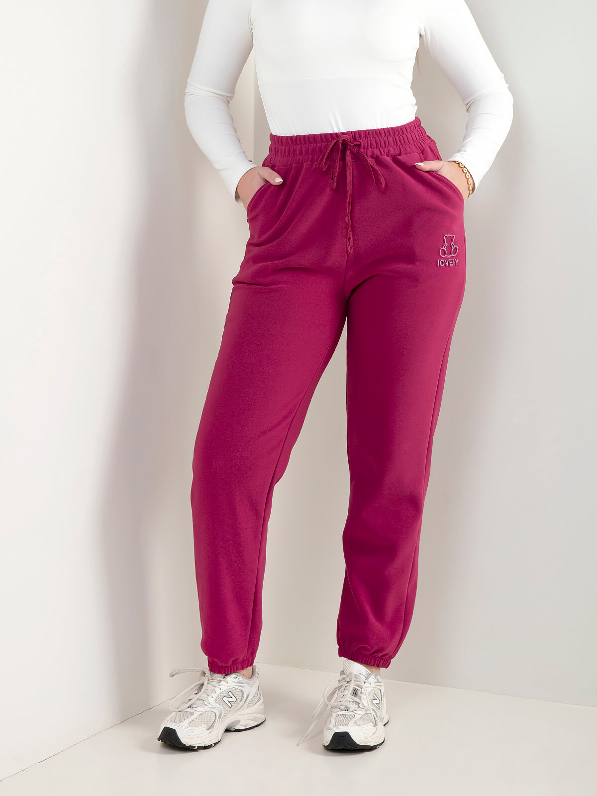 Calças comfy com cintura elástica e cordão ajustável. Têm 2 bolsos laterais e bordado de urso na perna. Interior cardado. Perfeitas para looks descontraídos do dia a dia.