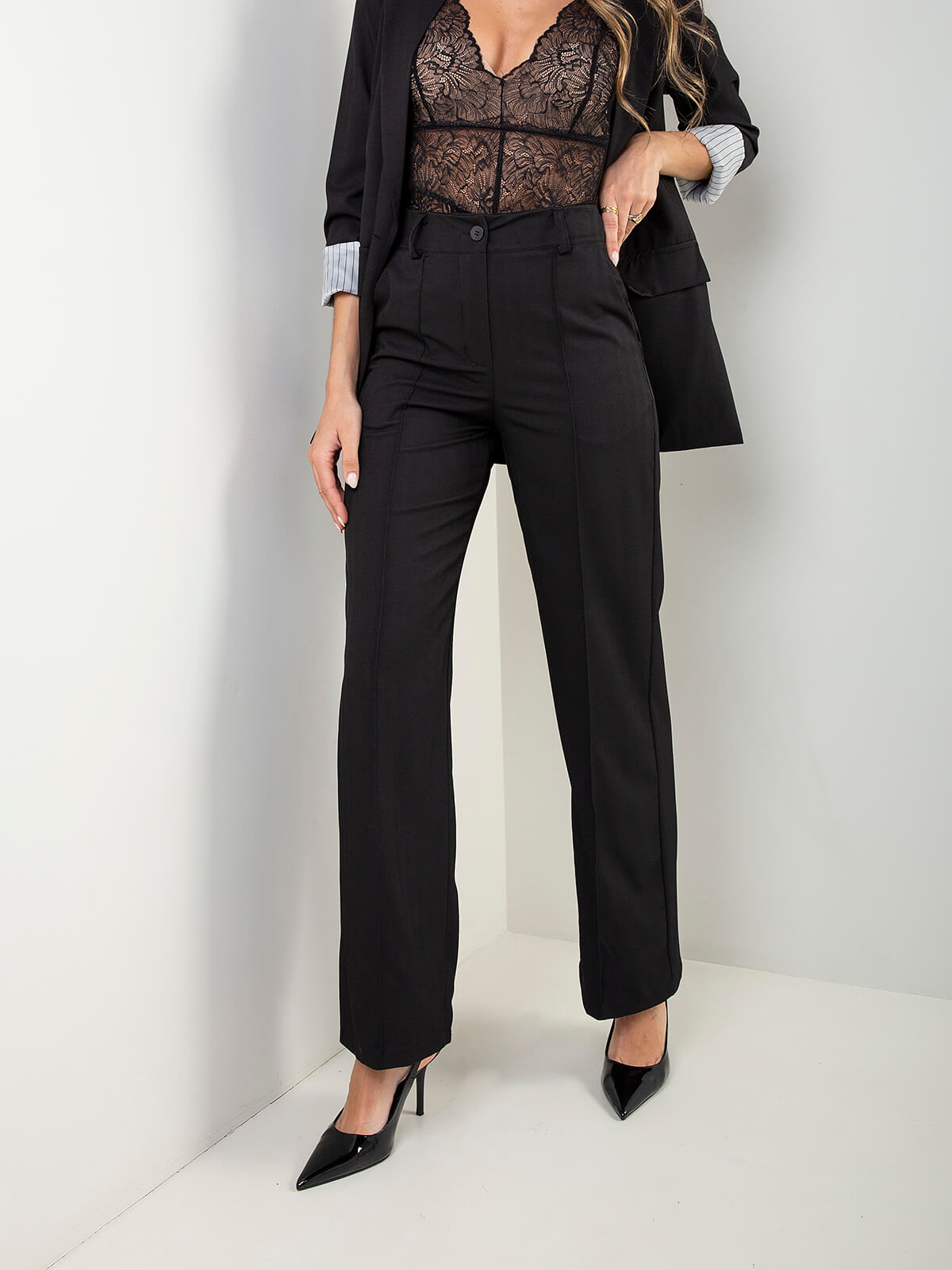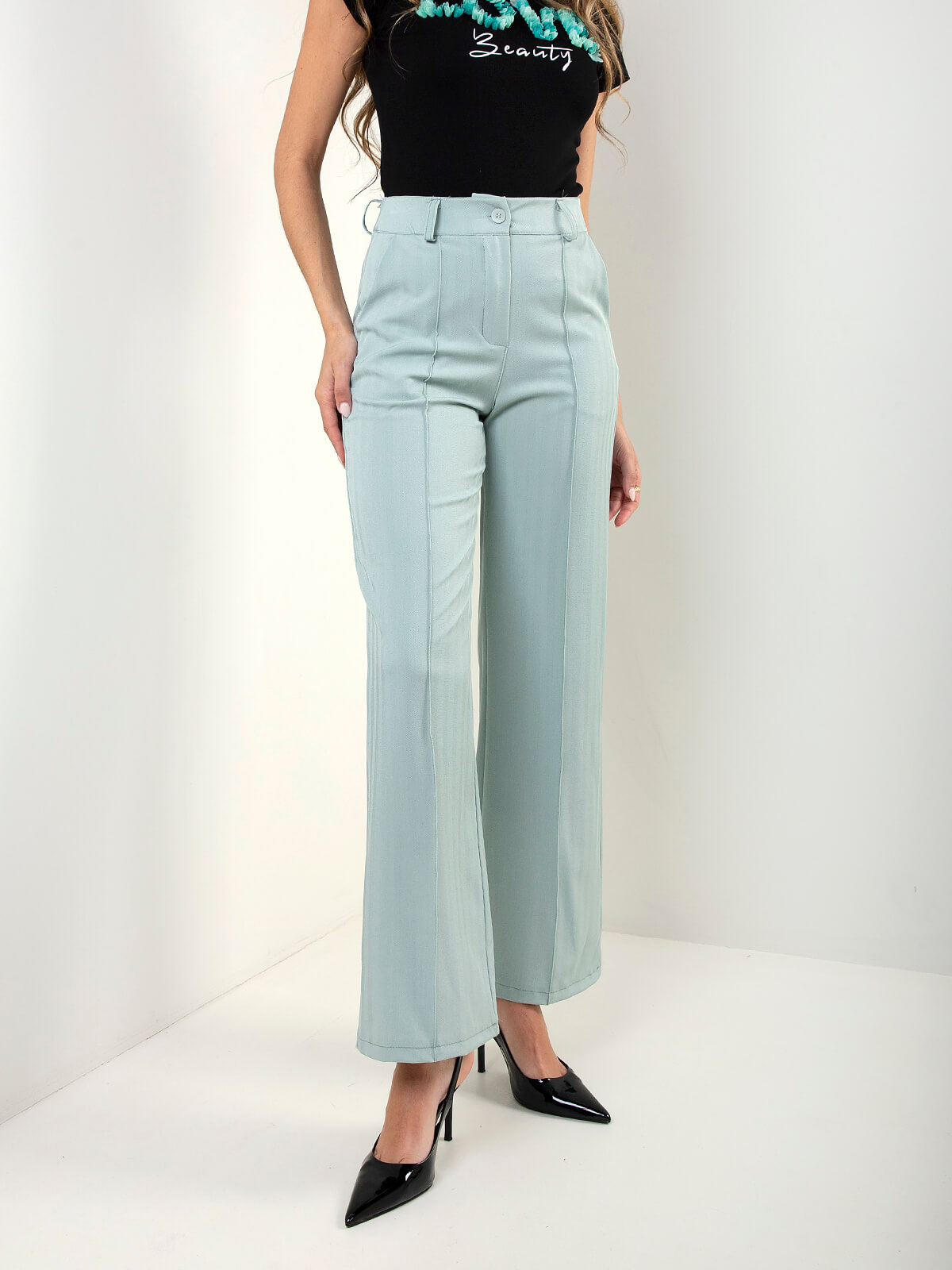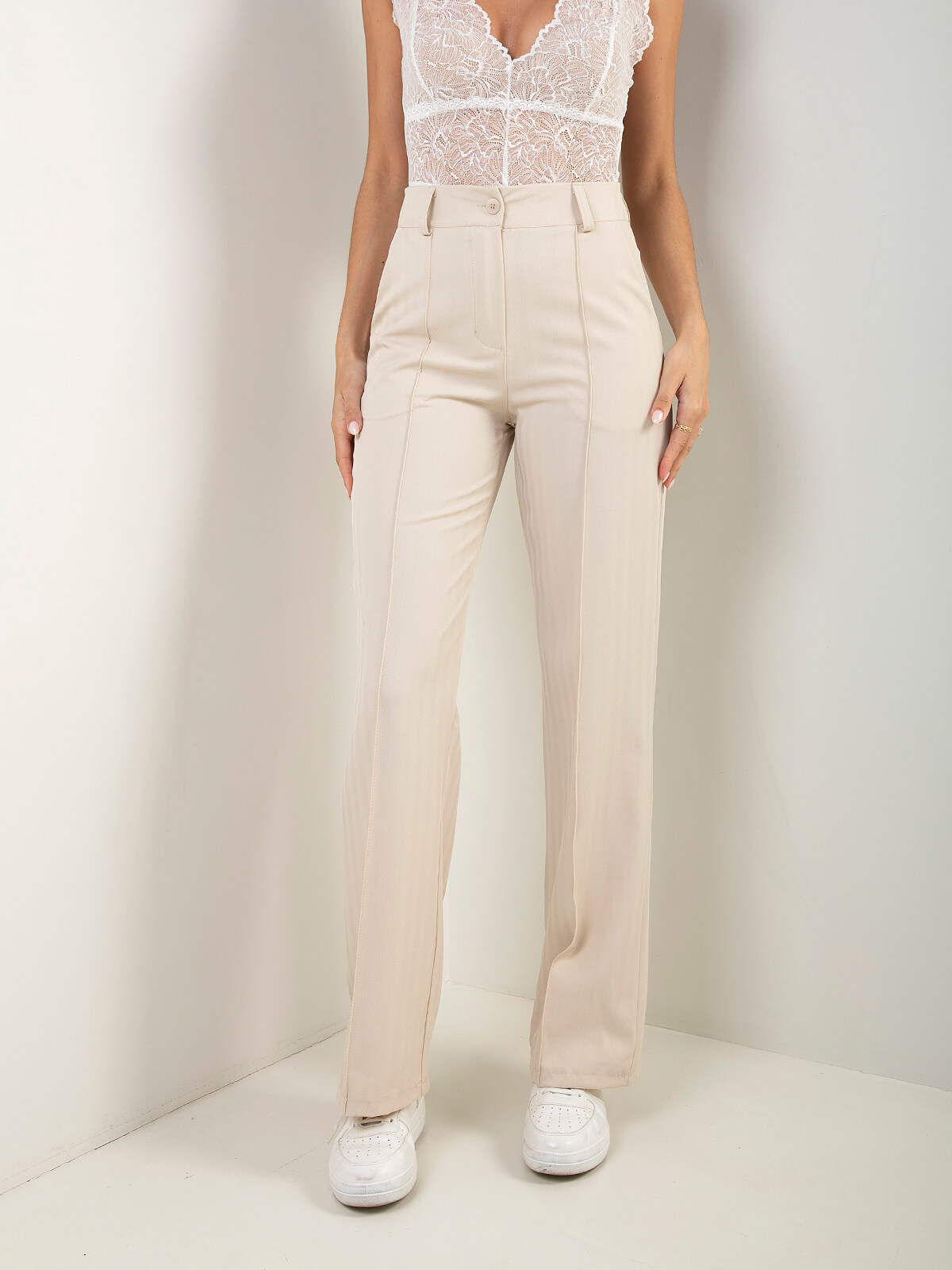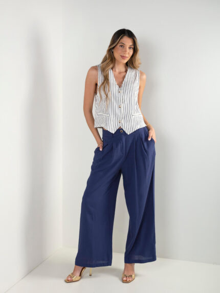 Calças de alfaiataria com corte estruturado e perna larga. Modelo de cintura subida com bolsos laterais e fecho frontal, que garante um caimento elegante e uma silhueta mais definida. Ideais para looks sofisticados e versáteis, do trabalho ao dia a dia.