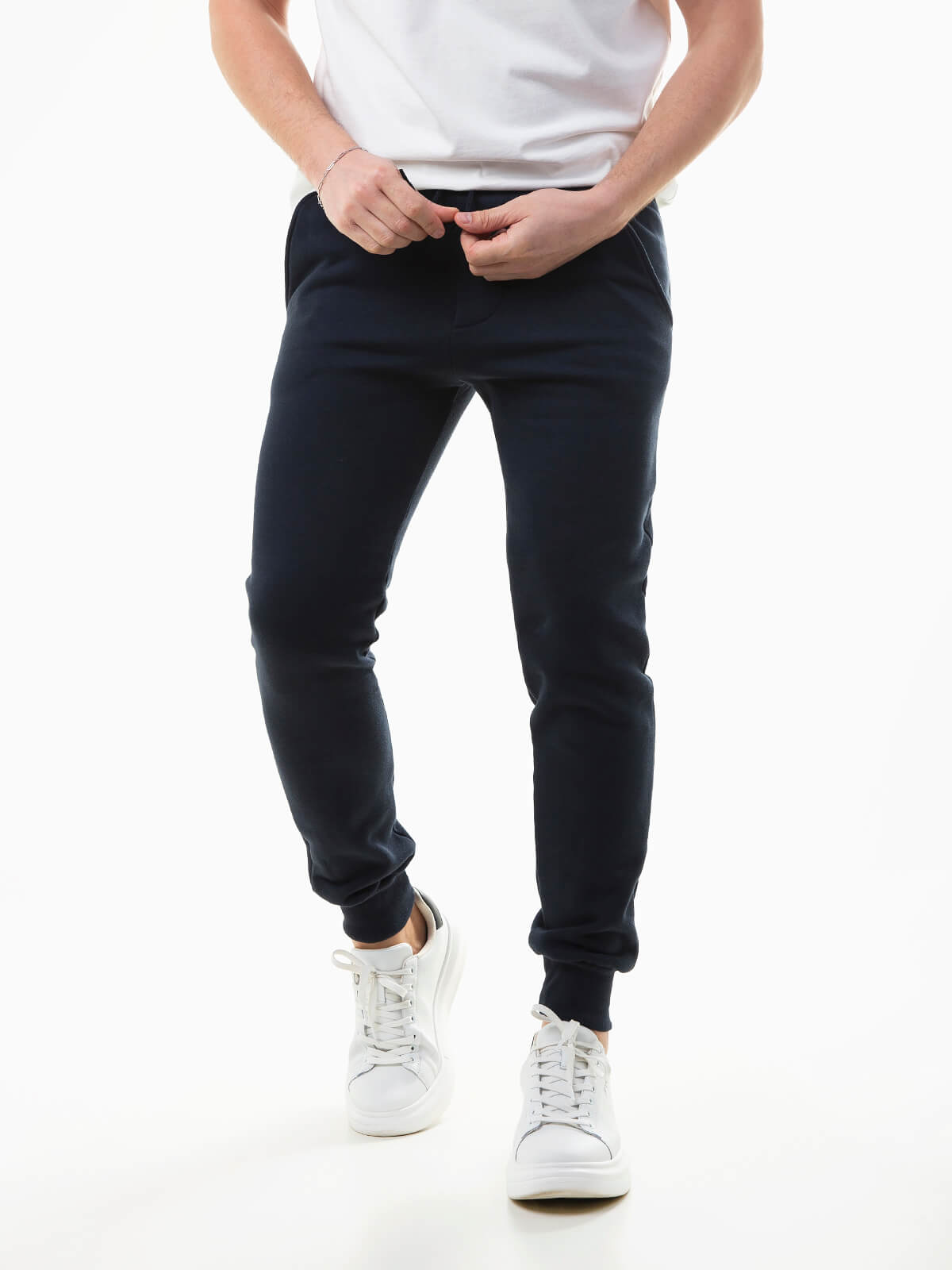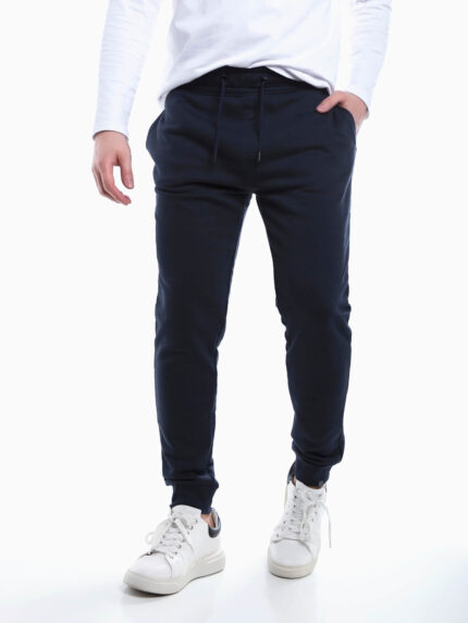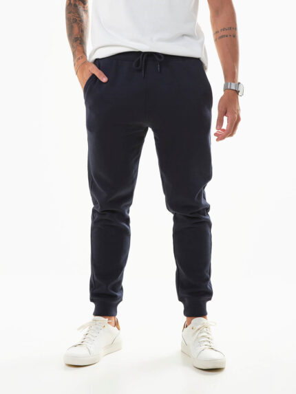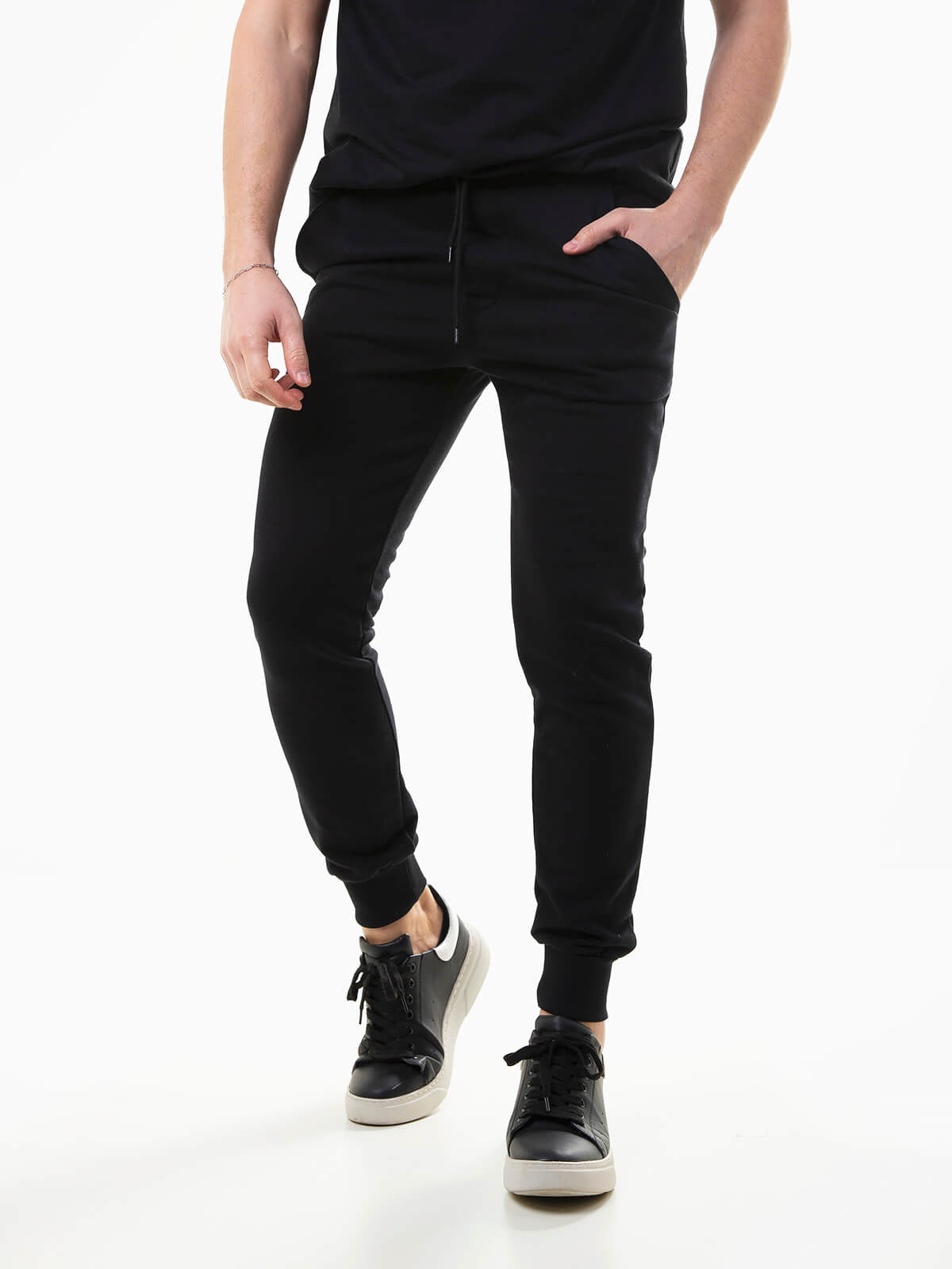 Calças de fato treino básicas em felpa de algodão com interior cardado. Joggers skinny para homem com cordão na cintura para ajustar. 2 bolsos.
