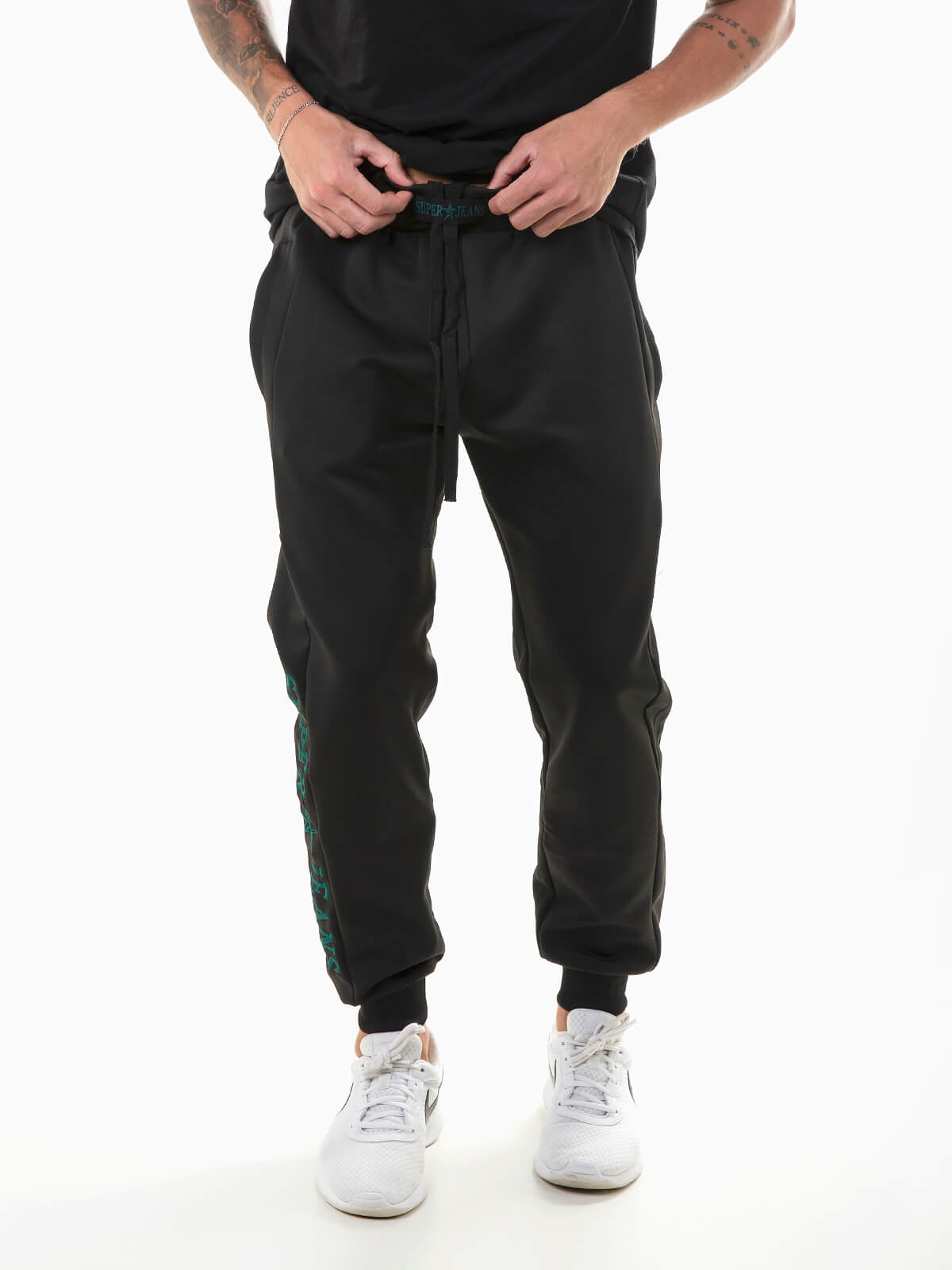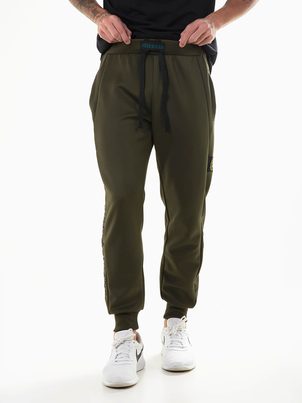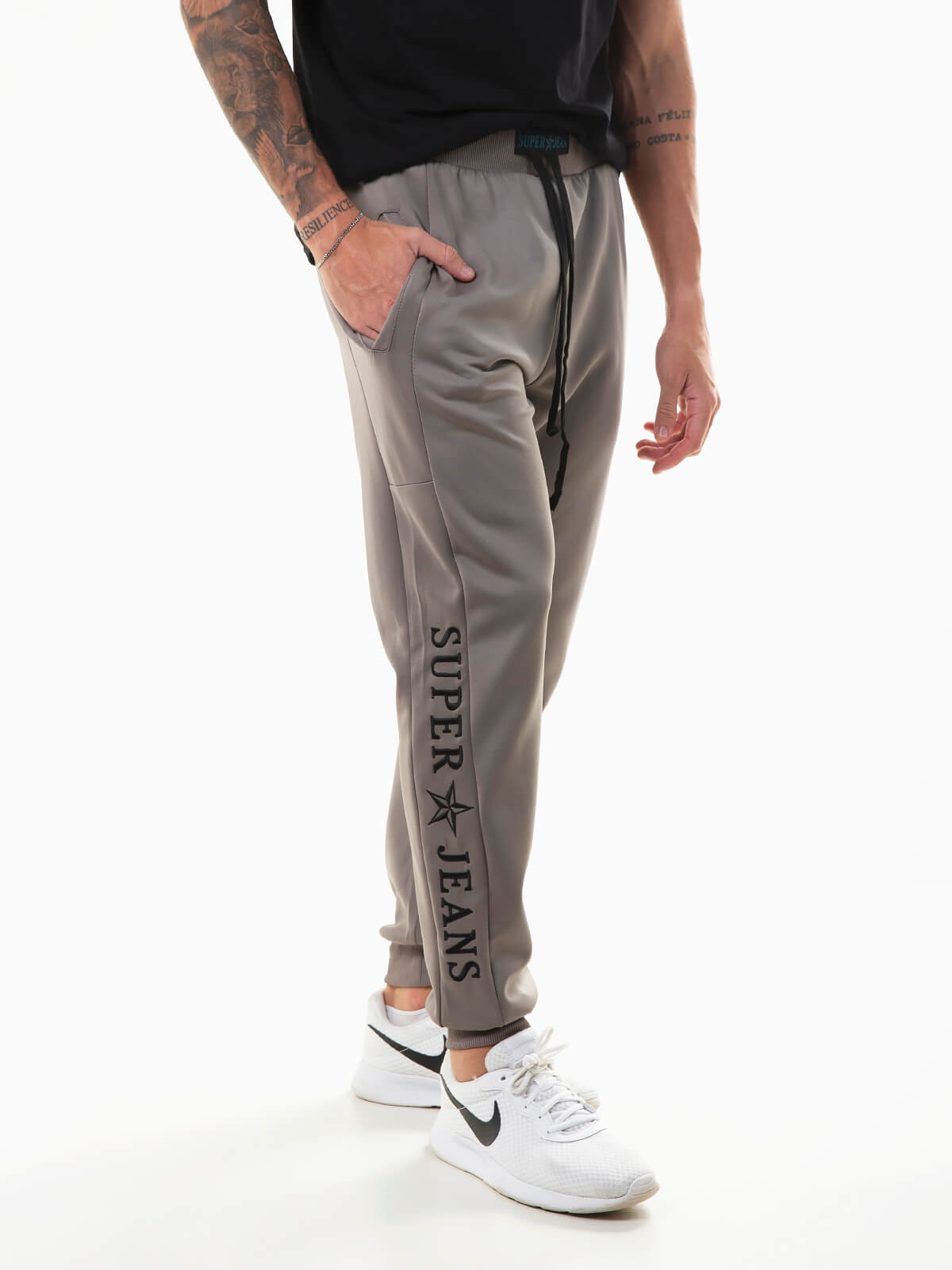 Calças desportivas em acetato com pormenores bordados para homem. Calças jogger com cordão na cintura para ajustar. 2 bolsos.