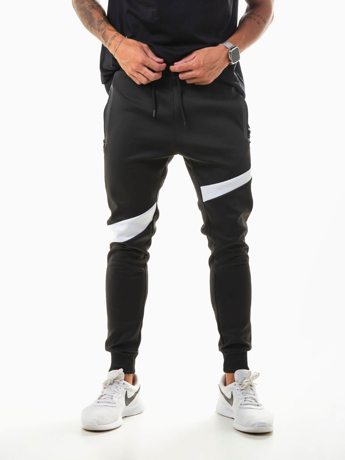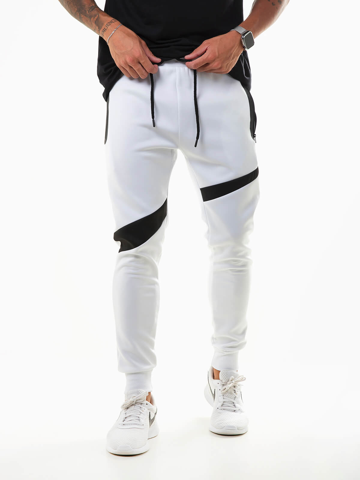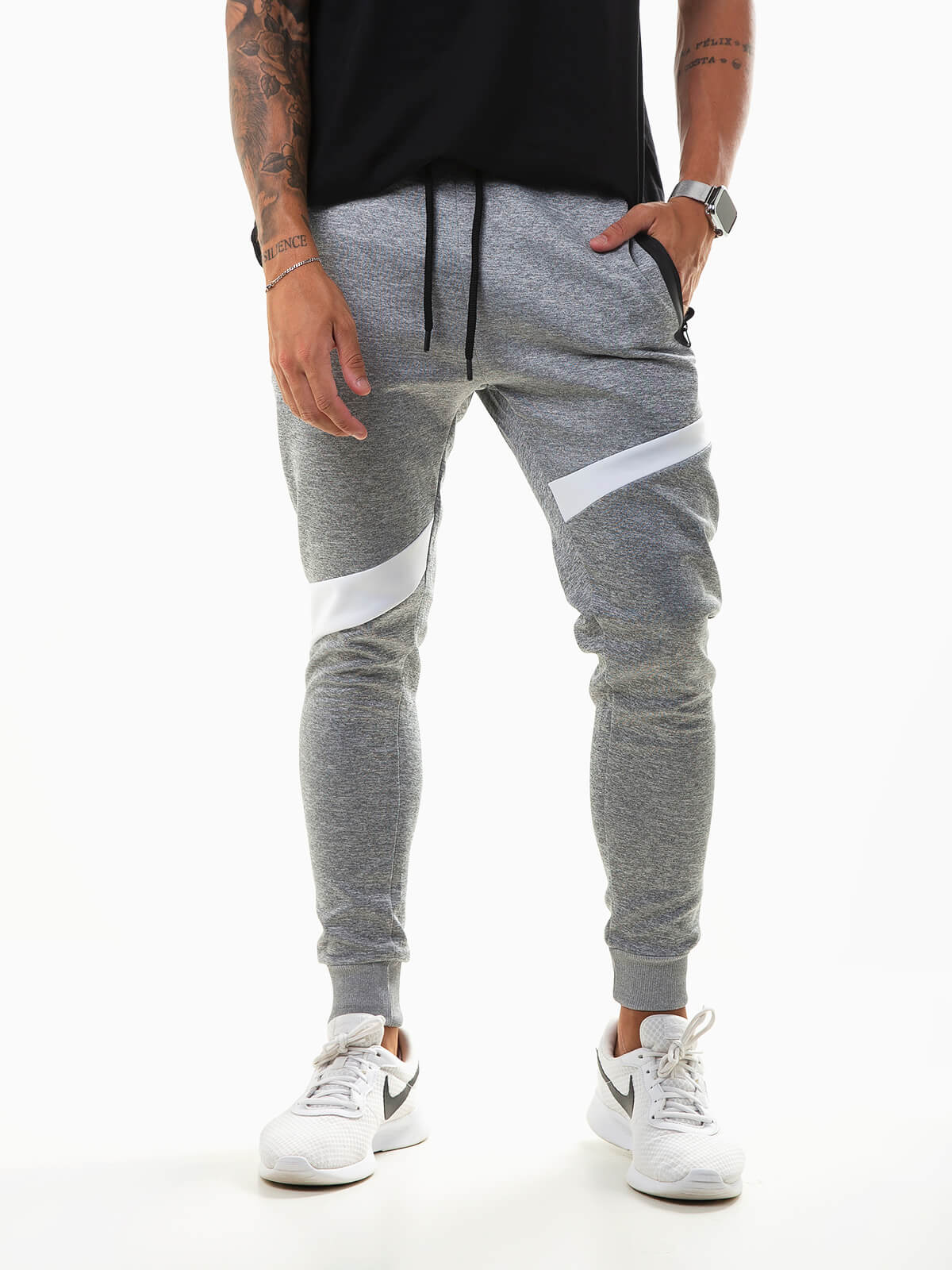 Calças desportivas com color block em tecido acetato, macias e confortáveis. Calças fato treino para homem com cordão na cintura para ajustar e 2 bolsos.