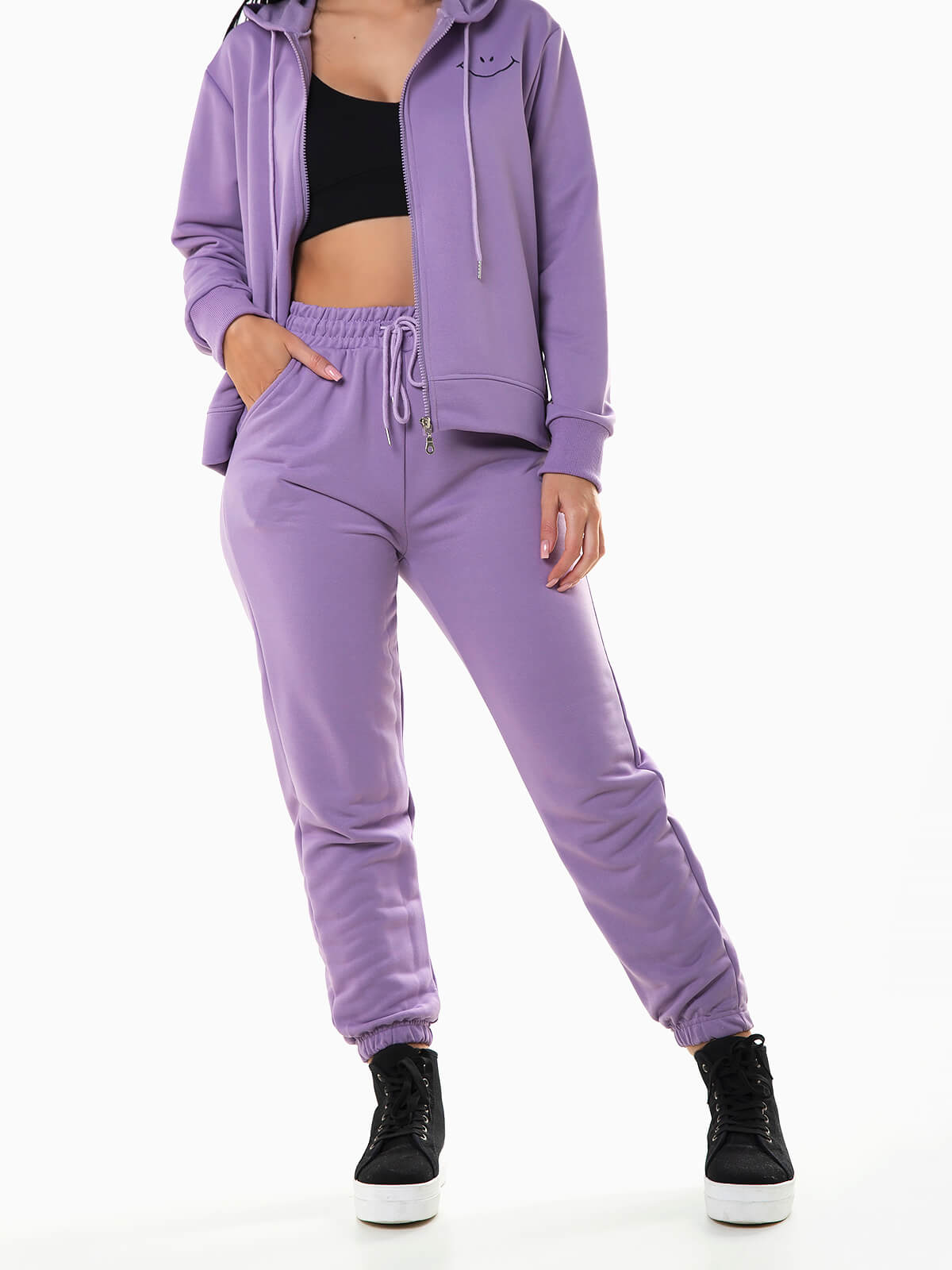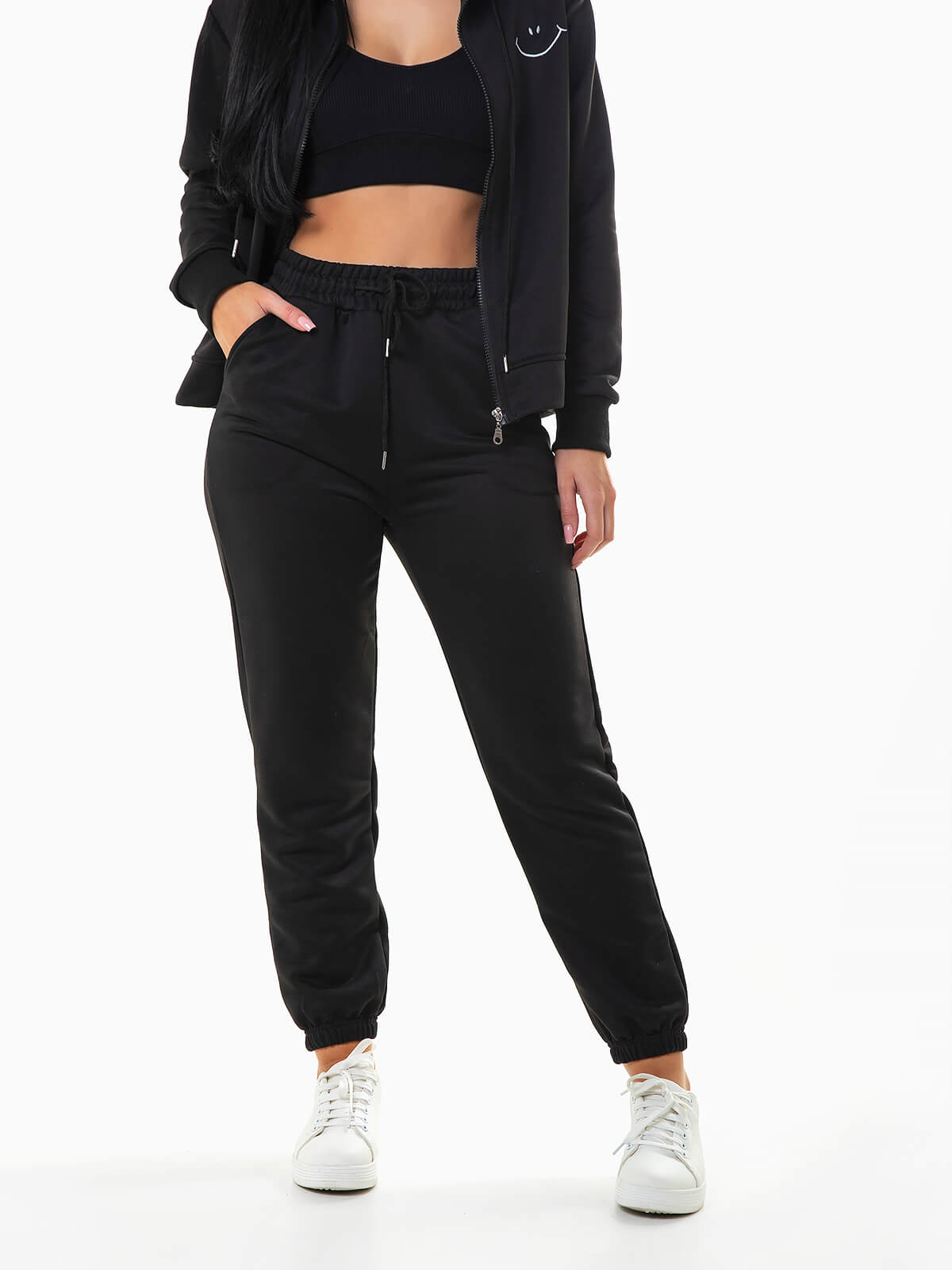 Calças fato de treino em tecido de poliamida para maior resistência e conforto. Calças jogger de cintura alta elástica com cordão para ajustar. 2 bolsos.