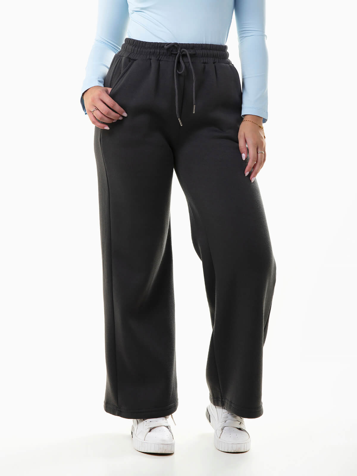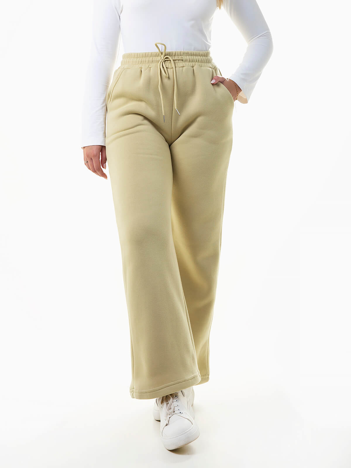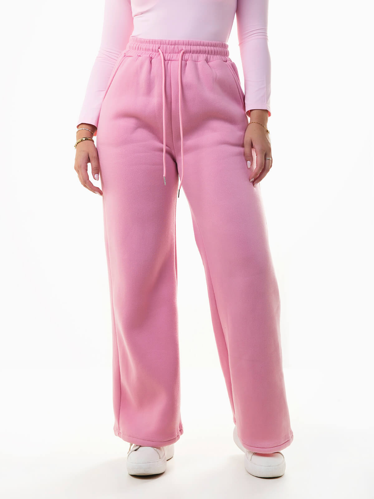 Calças fato de treino largas com cintura alta elástica e cordão para ajustar. Calças para senhora com interior cardado.