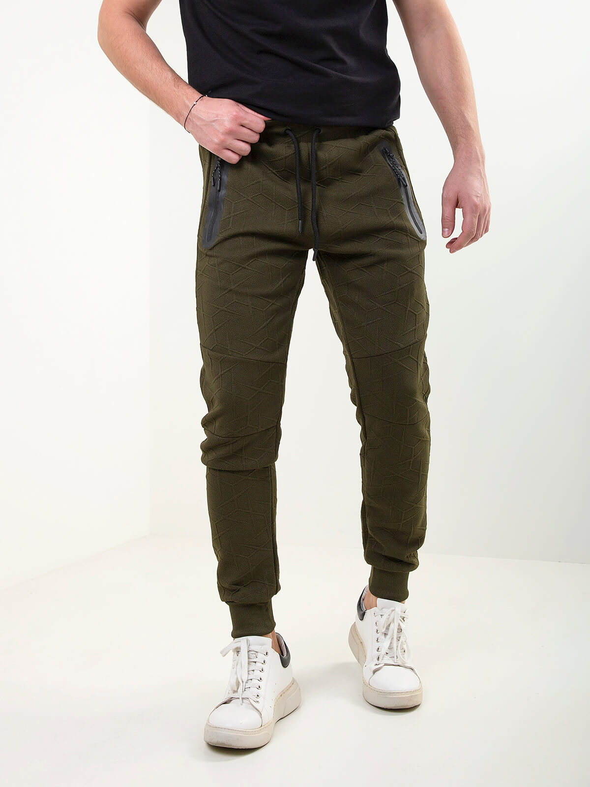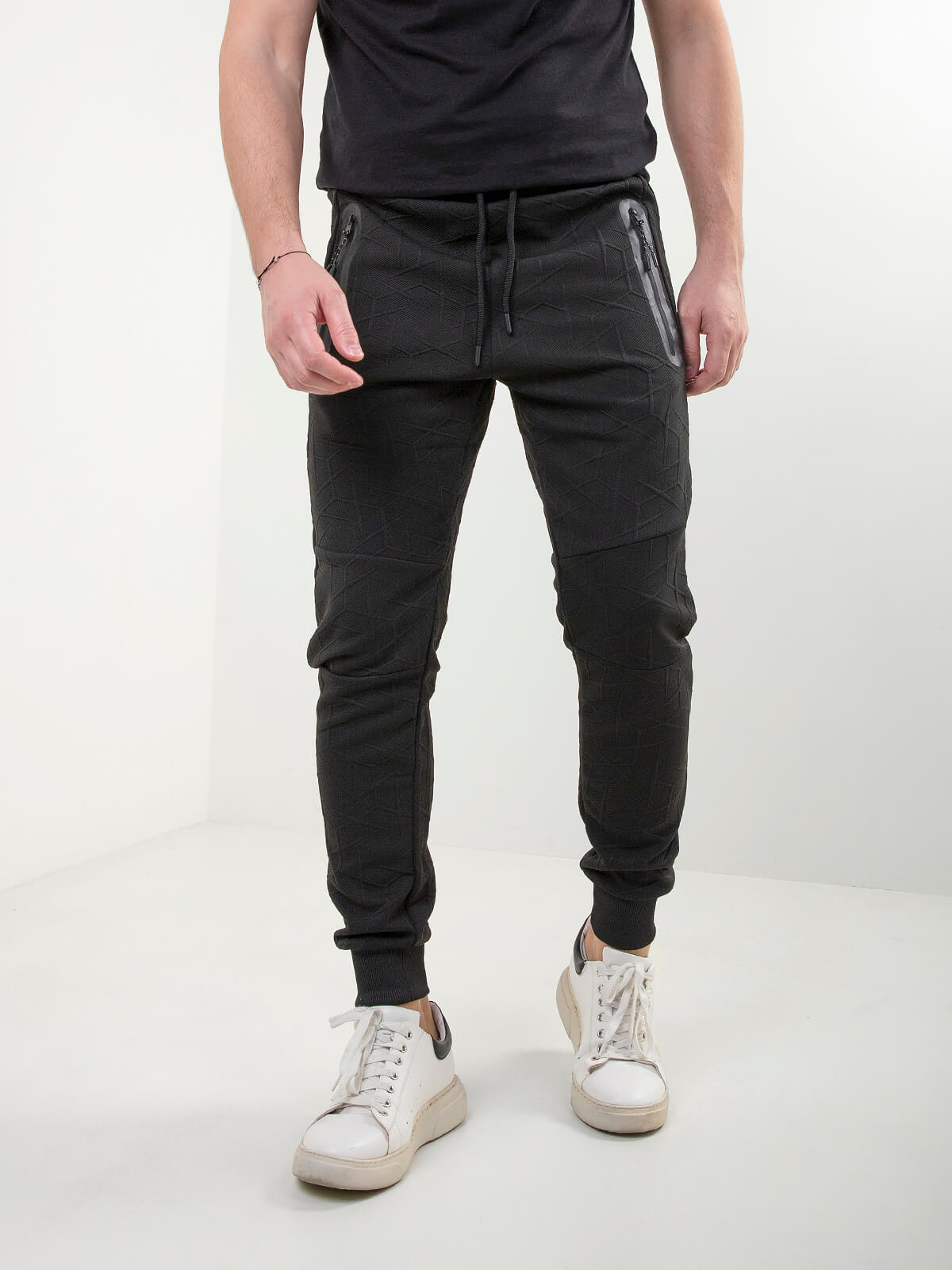 Calças de treino para homem em malha texturizada, super confortáveis e com design moderno. Modelo com cintura elástica, cordão ajustável e fechos contrastantes nos bolsos para um toque mais urbano. O corte jogger garante conforto no dia a dia, seja para treinar ou para um look mais casual.