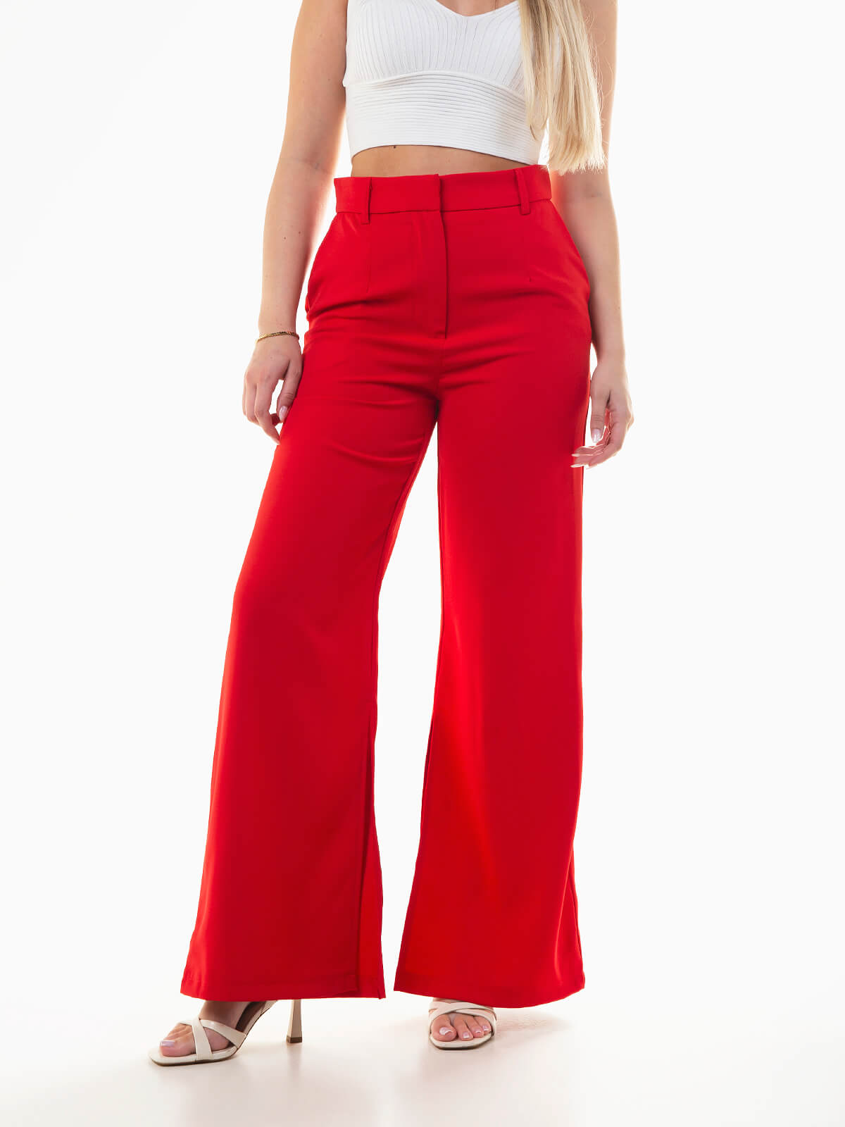 Calças fluídas com aberturas na base. Calças clássicas de cintura com 2 bolsos laterais e um posterior. Um essencial elegante e confortável, ideal para looks de trabalho, eventos ou coordenado com o colete a combinar.