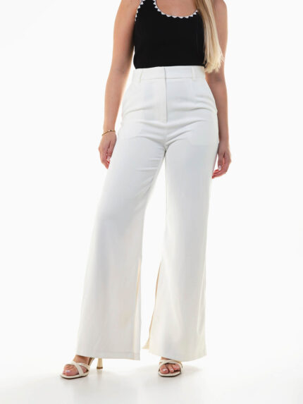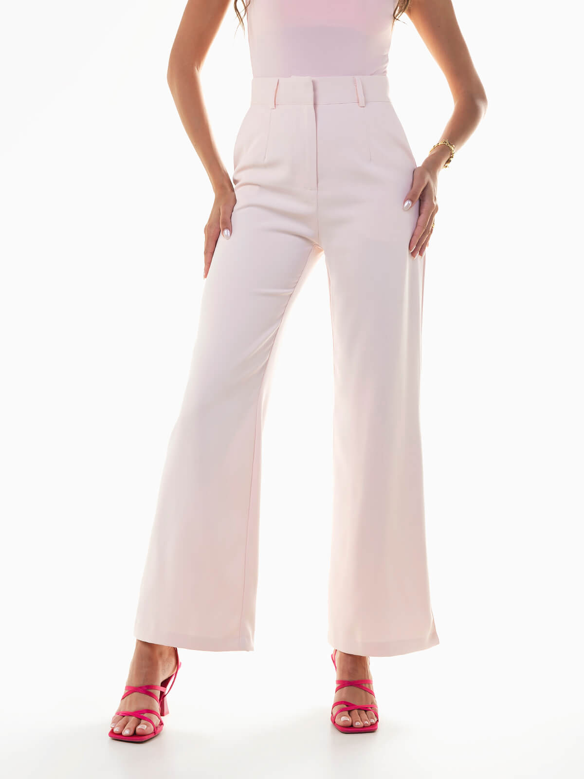 Calças fluídas de cintura alta com corte reto e acabamento clássico. Com dois bolsos laterais e um bolso posterior, oferecem conforto e sofisticação em igual medida. Um essencial de alfaiataria versátil, ideal para looks de trabalho, eventos ou para conjugar com o casaco a combinar.