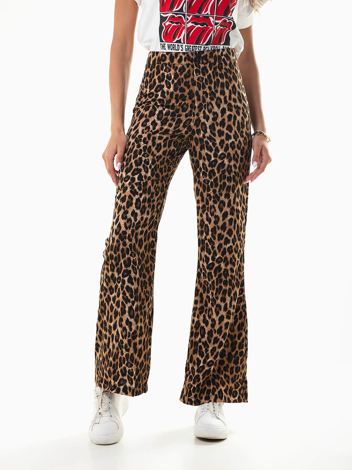 Início Mulher Calças Calças fluídas estampado leopardo