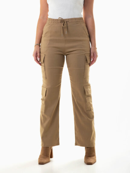 Calças fluídas plissadas com estampado de folhas. Calças com cintura alta elástica e cinto no mesmo tecido para laço.