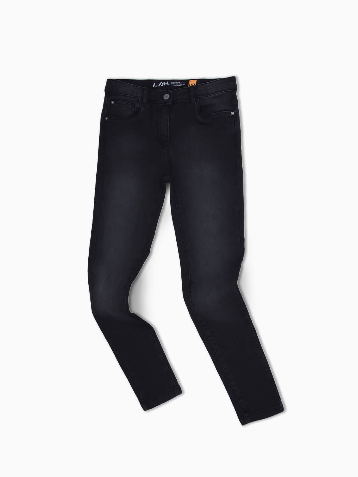 Calças de ganga justas para menina. Jeans elásticas com 5 bolsos. Aperto de fecho éclair e botão.