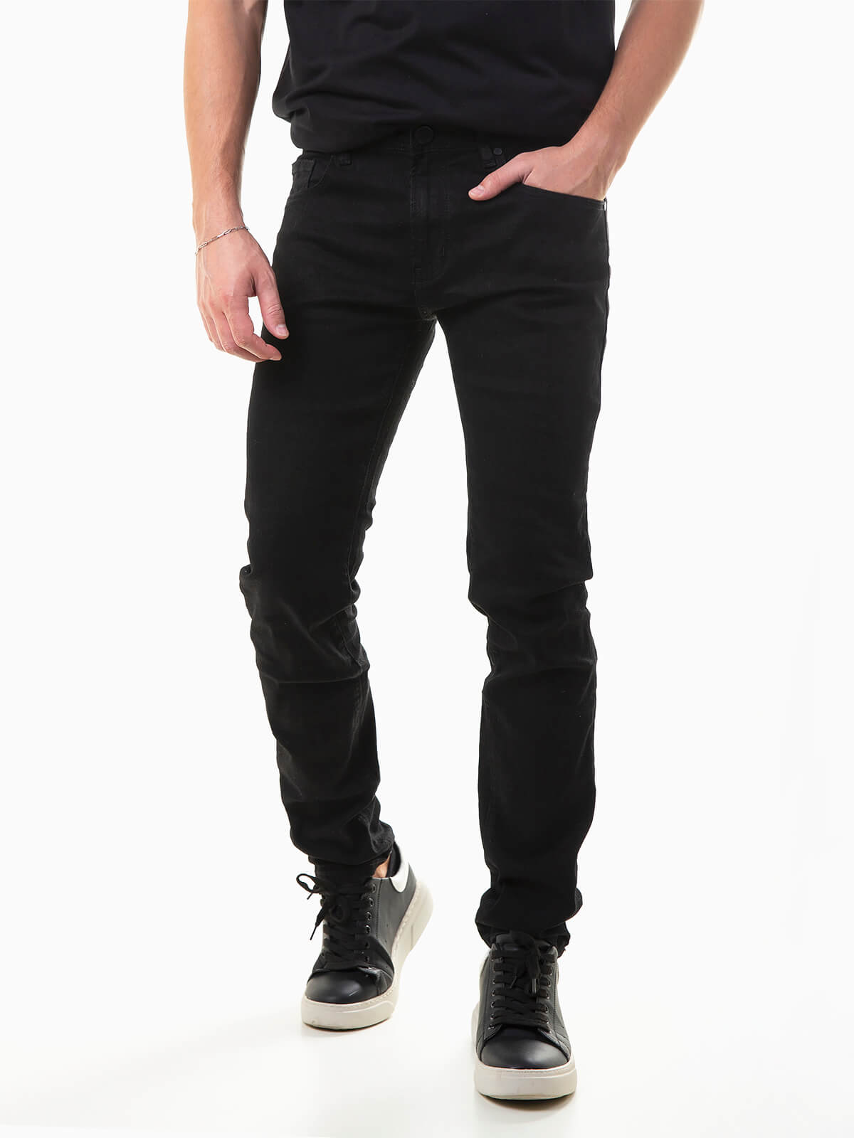 Calças de ganga regular fit para homem. Jeans com 5 bolsos. Aperto fecho éclair e botão.