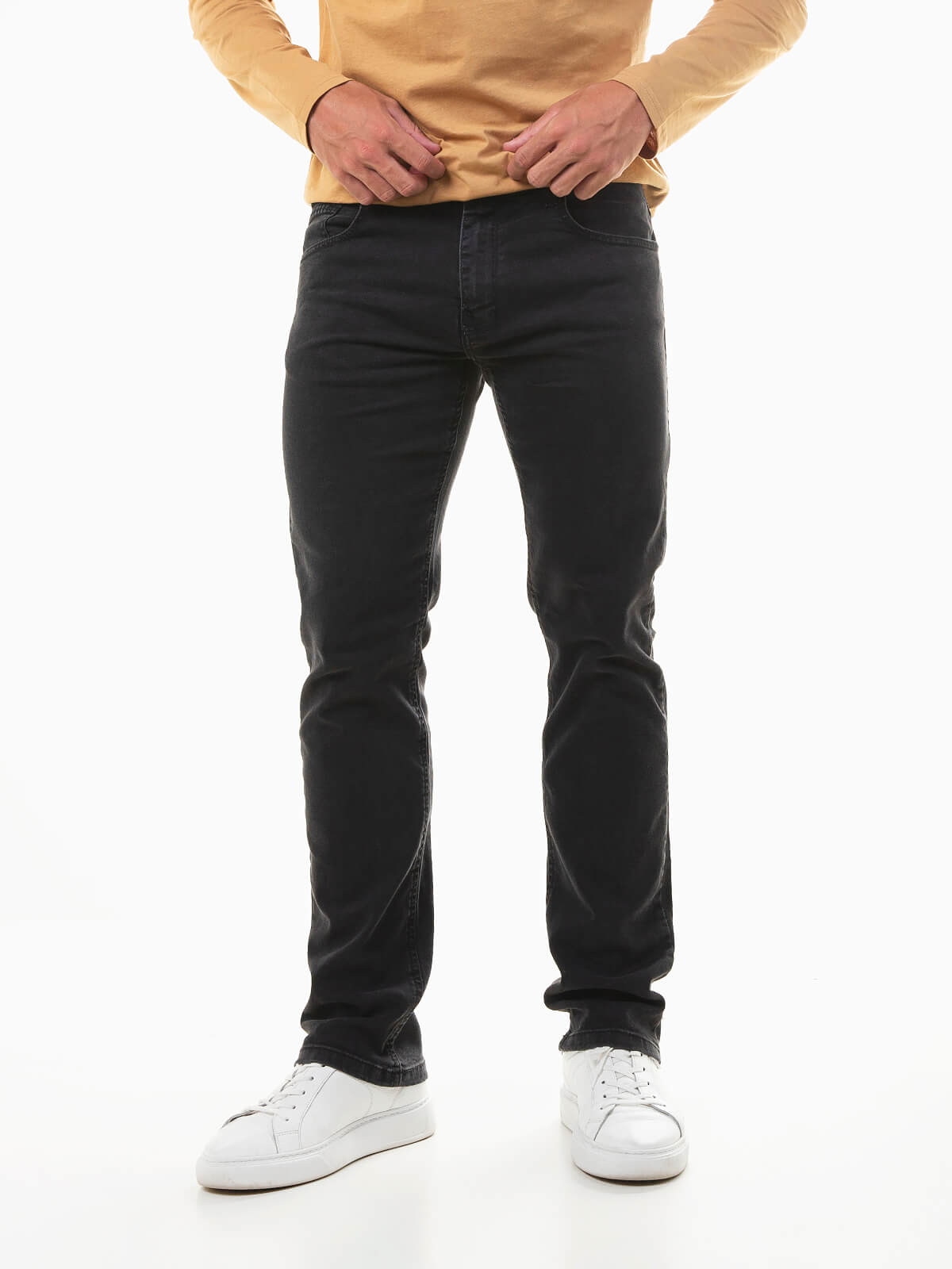 Jeans slim fit para homem em preto, com cinco bolsos clássicos e aperto por fecho éclair e botão. Um modelo versátil e moderno, perfeito para criar looks casuais ou urbanos com estilo.