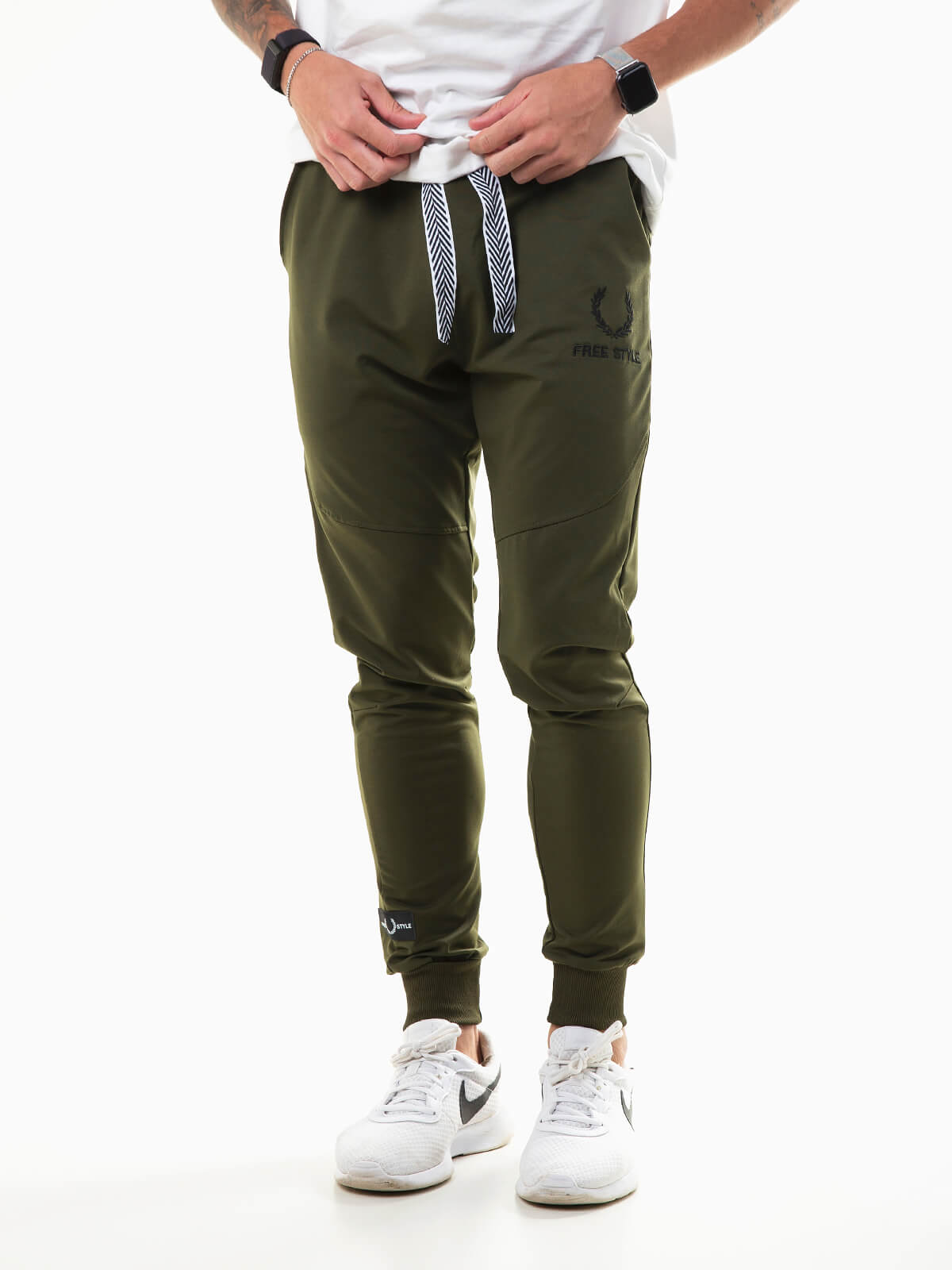 Calças jogger acetato com estampado pormenores bordados. Calças desportivas para homem com cordão para ajustar na cintura. 2 bolsos.